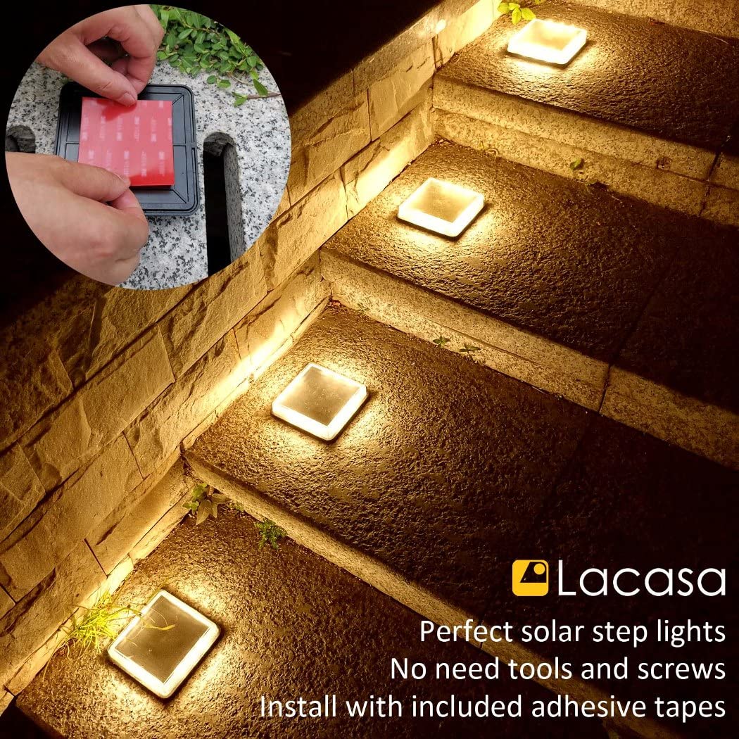 Solar Deck Lights, Driveway Walkway Dock Light Solar Powered Outdoor Stair Step Pathway LED Lamp for Backyard Patio Garden Groun
