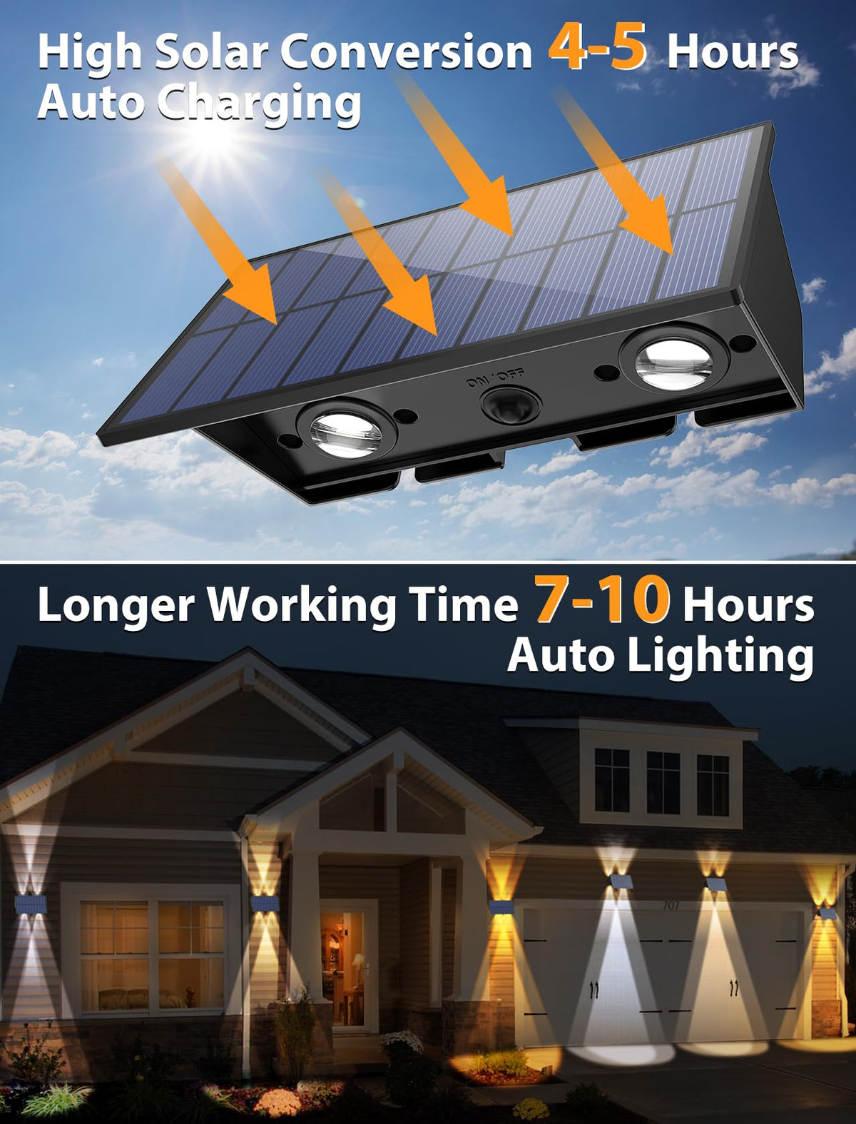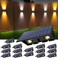 Solar Fence Lights,16Pack Solar Lights Outdoor 2700/4500/6000K 3 Mode Up & Down Solar Wall Lights Waterproof 100 Lumens Solar Po