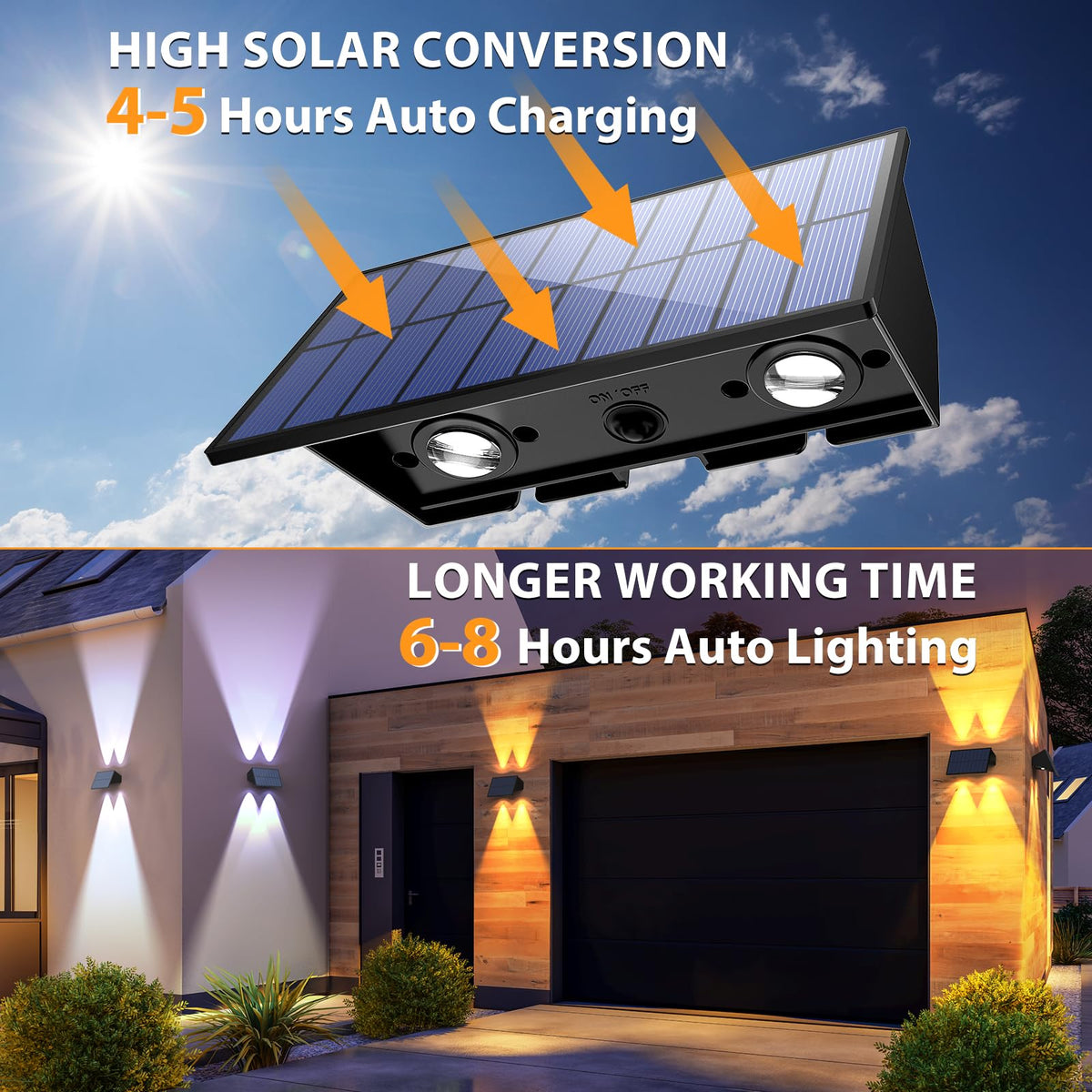 Solar Fence Lights,6Pack Solar Lights Outdoor 2700/4500/6000K 3 Mode Up & Down Solar Wall Lights Waterproof 100 Lumens Solar Pow