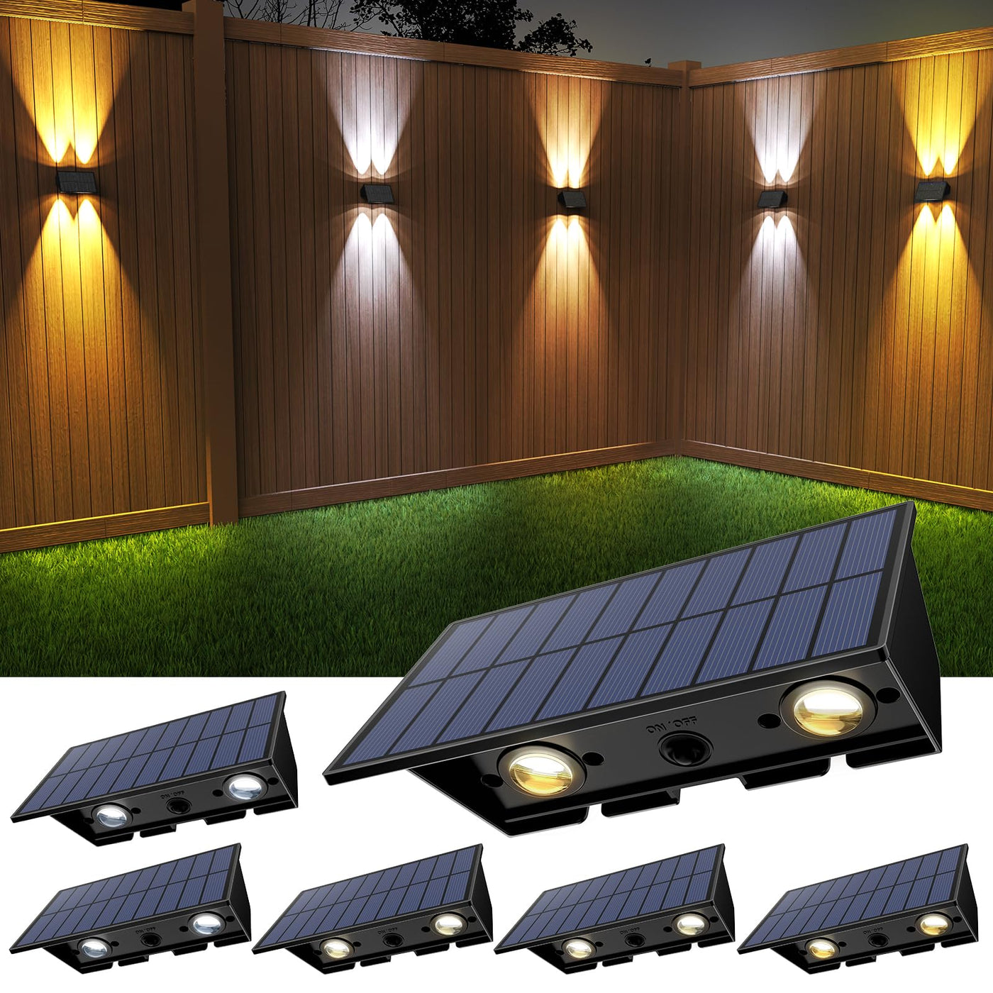 Solar Fence Lights,6Pack Solar Lights Outdoor 2700/4500/6000K 3 Mode Up & Down Solar Wall Lights Waterproof 100 Lumens Solar Powered Fence Light For Backyard/Pool/Railing/Patio/Porch/Step