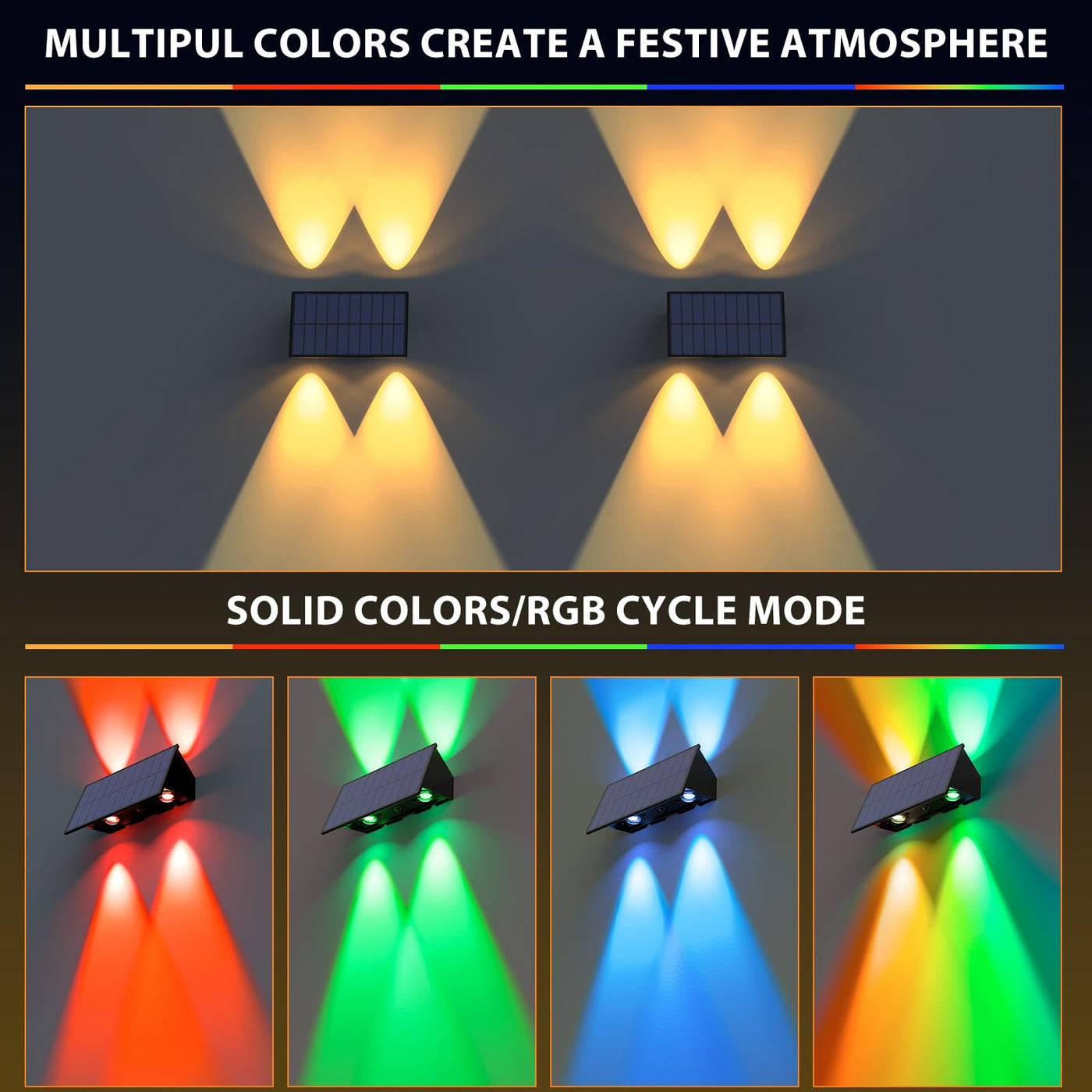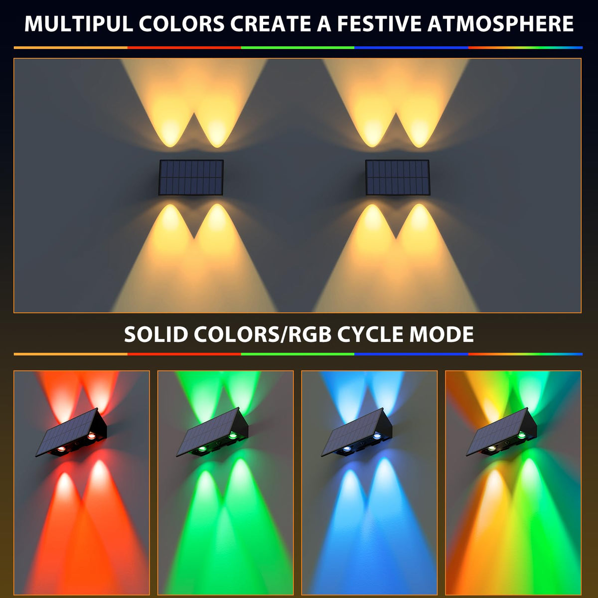 Solar Fence Lights,8Pack Solar Lights Outdoor Warm White + Rgb Up & Down Solar Wall Lights Waterproof 100 Lumens Dusk To Dawn So