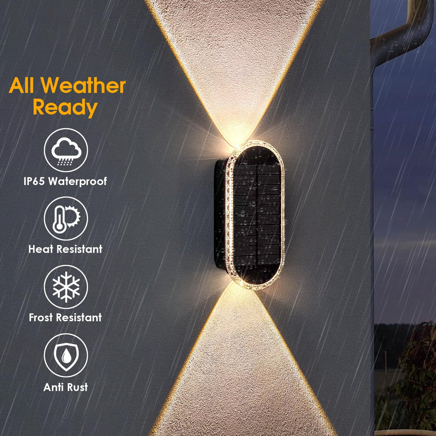 3 Modes/ Up & Down Lighting Solar Fence Lights: This solar wall lights uses up & down lighting design and provides 3 lighting modes: warm white/ neutral white/ cool white mode. Ideal for everyday lighting to brighten up your fence or yard. If you're looking for an environmentally friendly and economical way to light up your yard, this solar-powered option is sure to impress you | Focused & Energy-saving: The fence lights solar powered equipped with upgraded reflective lens that up to 50 lumens bright, emitting a more focused and intense beam of light and illuminating a wider area. At the same time, high-quality photovoltaic panels can convert sunlight into electricity 20% more efficiently than most other solar fence post lights and help you reduce your electricity bills | Two Types of Installation: Fence post solar lights are relatively easy to install since they don't require any electrical wiring. outdoor fence lights can be mounted with screws (included) on outdoor walls, fences, next to the porch, or can be directly affixed with 3m adhesive (included), which does not require a professional electrician to install and saves labor costs. This outdoor solar lights for house wall yard can be installed on porch, patio, fence, deck, garage, gate (Please install it in direct sunlight location) | IP55 Waterproof Solar Wall lights: Solar lights outdoor waterproof is made of high-quality ABS material and have IP55 rating, anti-rust and all-weather resistant can provide you constant lights in all bad weather, definitely a great lighting accessory for outdoor use. Note: The working time of solar outdoor lights on cloudy and rainy days will be shortened because they are not exposed to long enough light, which is a normal phenomenon | Portable Size & Widely Used: Our deck lights solar powered are compact and portable, easy to handle and install in a variety of locations. Despite its small size, the outdoor step lights are very bright and suitable for enhancing security around doorways and garages, illuminating paths and backyards, and providing ample lighting for steps, fences, paths, stairs and more