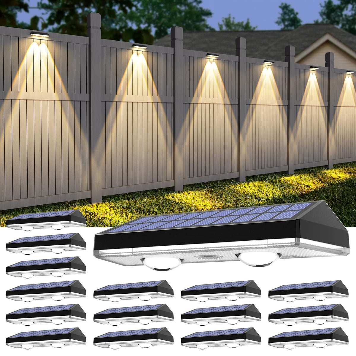 Solar Fence Lights ,Rgb & Warm White & 6 Colors Bright Lens Led Dusk To Dawn Deck Light, Fence Solar Lights Outdoor Waterproof, Solar Outdoor Lights For Backyard/Railing/Wall/Step/Patio/Pool (16Pack)