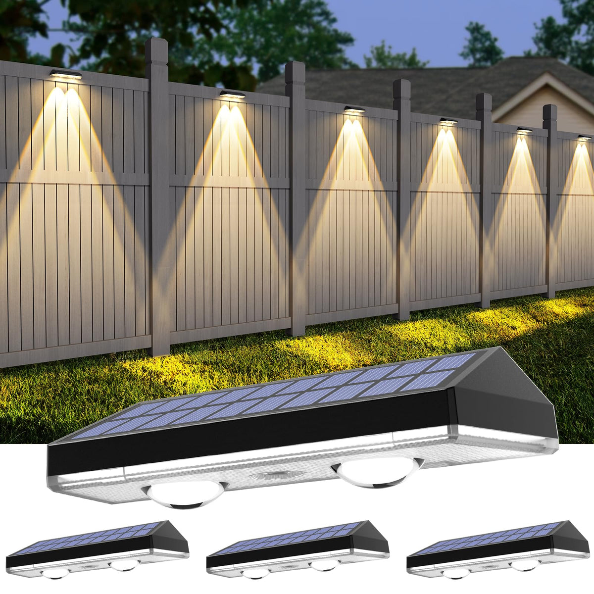Solar Fence Lights ,RGB & Warm White & 6 Colors Bright Lens LED Dusk to Dawn Deck Light, Fence Solar Lights Outdoor Waterproof, Solar Outdoor Lights for Backyard/Railing/Wall/Step/Patio/Pool