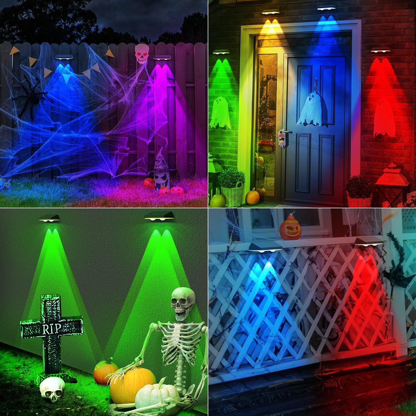 Solar Fence Lights ,RGB & Warm White & 6 Colors Bright Lens LED Dusk to Dawn Deck Light, Fence Solar Lights Outdoor Waterproof, Solar Outdoor Lights for Backyard/Railing/Wall/Step/Patio/Pool