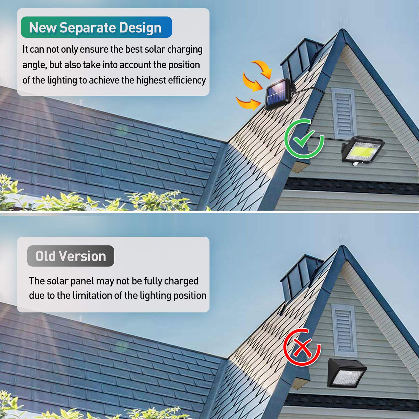 Do you feel unsafe in the dark path but feel like you dont have to stop the light? Are you worried that someone might come and go in your yard, in front of the gate or at the garage door, but you cant tell? Tired of stumbling and stumbling in the dark? Its time to buy a sun sensor safety light to keep the lights on and save energy. Have you ever bought a few emergency lights but the lighting brightness and lighting time are not satisfactory? Due to the integrated design of the traditional safety light, it may not be able to fully store energy due to the poor angle of light at the location. Our separate design solves this problem perfectly. In addition, we use solar panels with a larger area and higher conversion efficiency to ensure a longer life of the lighting. High power COB light source The COB light source has less light drop-off, uniform light emission, no spot and strong color rendering performance. High heat dissipation efficiency and long service life. Three modes for selection: Mode A: Light off turn to full brightness when someone is induced to pass by. Mode B: Dim brightness turn to full brightness when someone is induced to pass by. Mode C: Always maintain full brightness. Specifications: Material: ABS plastic Product size: 14.8 * 12.7 * 2.4cm Solar panel size: 12.8 * 13.1 * 1.5cm Battery: 3.7 V 1200 mAh lithium battery Brightness: 500LM
