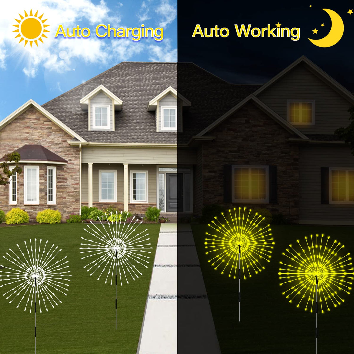 Q: What makes these solar lights a good gift option?A: These solar fireworks lights are perfect for gifting on occasions like Mother's Day, Father's Day, and Christmas, as they create a festive and romantic atmosphere while being easy to use and install.
