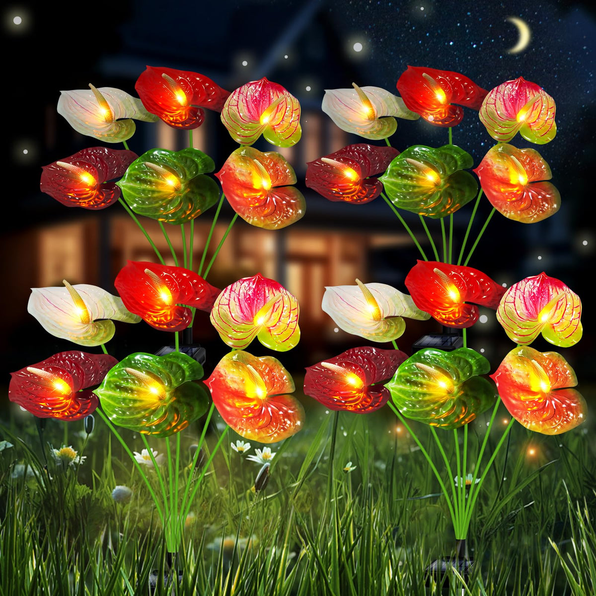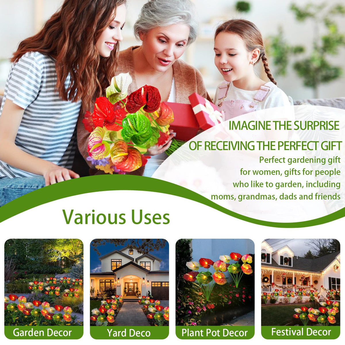 Solar Garden Lights Outdoor, 2024 Upgraded Solar Red Anthurium Plant Lights Outside Waterproof, Gardening Gifts For Mother'S Day Women, Garden Decor For Yard Lawn Front Porch Patio Backyard(4 Pack)