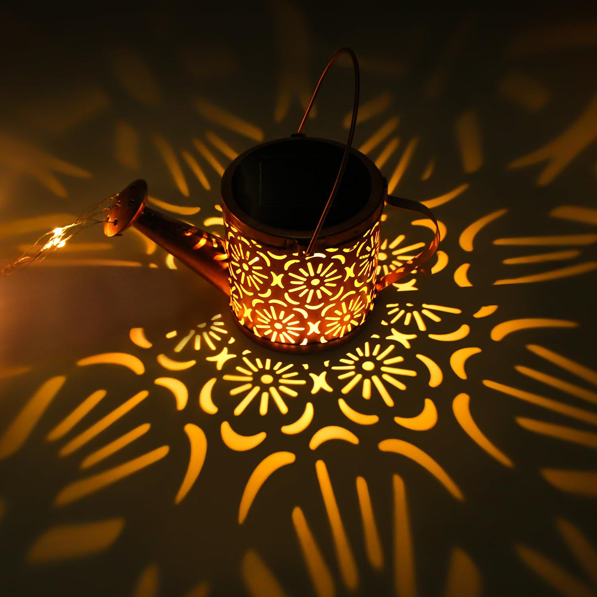 This Is A Unique Solar Garden Lights Which Is Designed In Of A Water Bottle. When The Outdoor Garden Lights Twinkles The Sunlight Pours Out From The Solar Watering Can Like Water. The Can Body Of The Solar Hanging Lights Outdoor Is Carved With Hollow Star Patterns Which Can Be Projected Onto The Ground When The Hanging Solar Lights For Outside Is On Creating A Charming Atmosphere. The Solar Water Can Lights Is Designed With A Waterproof Rating Of Ip65 Preventing Rainwater Infiltration And Effectively Adapting To Outdoor Working Environments. This Solar Powered Outdoor Light Has A Unique Design And Can Be Used To Decorate Gardens Backyards Pathway Etc. It Is An Excellent Gift For Mother Wife And Girlfriend.