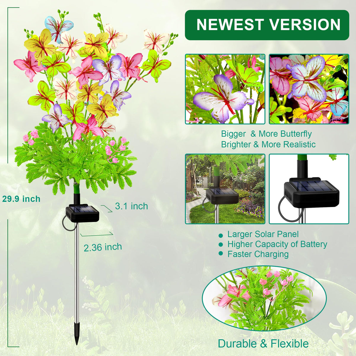 Solar Butterfly Lights Contains 50 Colorful Butterflies And 50 Warm White Led Fairy Lights. Butterflies Are Made Of High Quality Fabrics And Beautifully Designed To Mimic Real Butterflies,Adding A Lot Of Vibrancy To Your Outdoor Space.