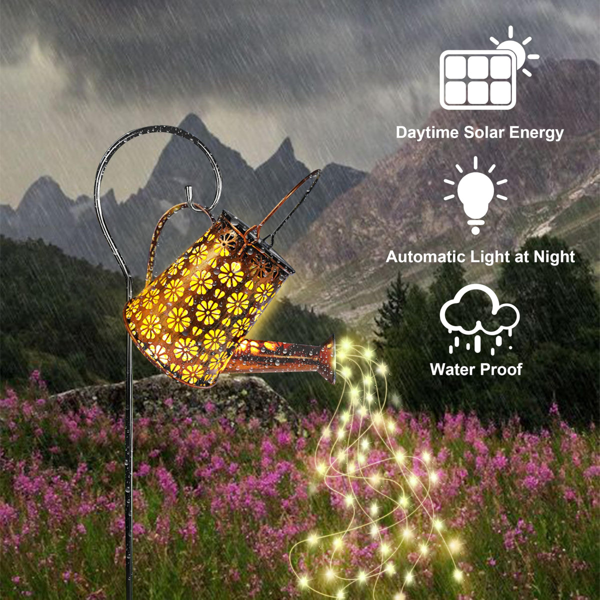 Solar Garden Watering Can Lights,Solar Waterfall Lights With Cascading Lights,Garden Decor For Outside,Solar Outdoor Light Hangi