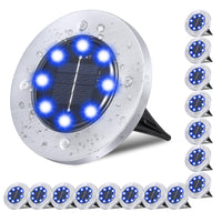 Solar Ground Lights, 16 Pack 8 LED Solar Pathway Lights, Make your night scene more beautiful~ 1. Perfect for your path / garden / terrace / lawn / driveway etc. 2. Solar power design, no additional cable wiring is required. 3. When the solar garden lights ?receives solar energy on a sunny day, the light is fully charged with the help of an integrated light sensor, and it will automatically light up at night for up to 6-10 hours (affected by the weather), and will automatically turn off during the day. 4. Made of stainless steel and ABS materials, it can be sealed well and effectively isolate water and fog. It can still work effectively in bad weather conditions.