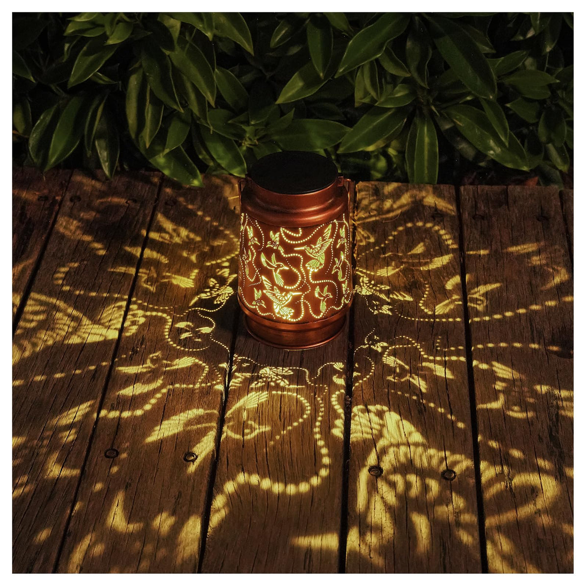 Q: What materials are used in the construction of the lantern?A: The Solar Hummingbird Lantern is made of sturdy, thickened metal with a decorative hollow-out design. Its durable construction ensures it lasts while providing a beautiful, warm light in your outdoor space.