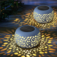 NFEVER solar lantern have a unique white retro metal design that creates a cozy atmosphere in gardens and patios. These round solar lanterns can be placed on a table or on the ground to add a romantic touch to outside spaces. They offer two color lighting modes and are made of thickened metal for durability. These solar lights outdoor are waterproof and make perfect gardening gifts.
