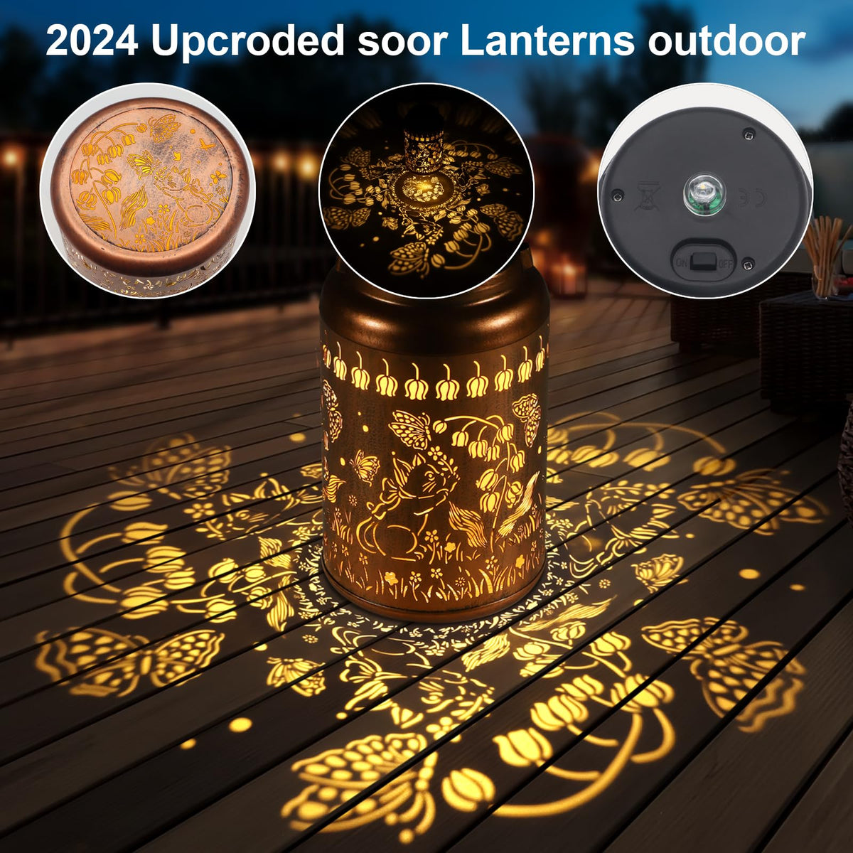 Introducing our premium Outdoor Lanterns! Illuminate your outdoor space with these elegant solar lanterns, featuring beautiful patterns and a durable waterproof construction. These solar lanterns are upgraded for efficiency, providing stable LED light that will last for hours. Enjoy easy maintenance with solar power charging, making them the perfect versatile decor for your outdoor space. Whether you're looking to enhance your garden, patio, or porch, these lanterns offer quality assurance and make a thoughtful gift for any occasion. Add a touch of grace and beauty to your outdoor decor with our reliable and stylish Outdoor Lanterns.