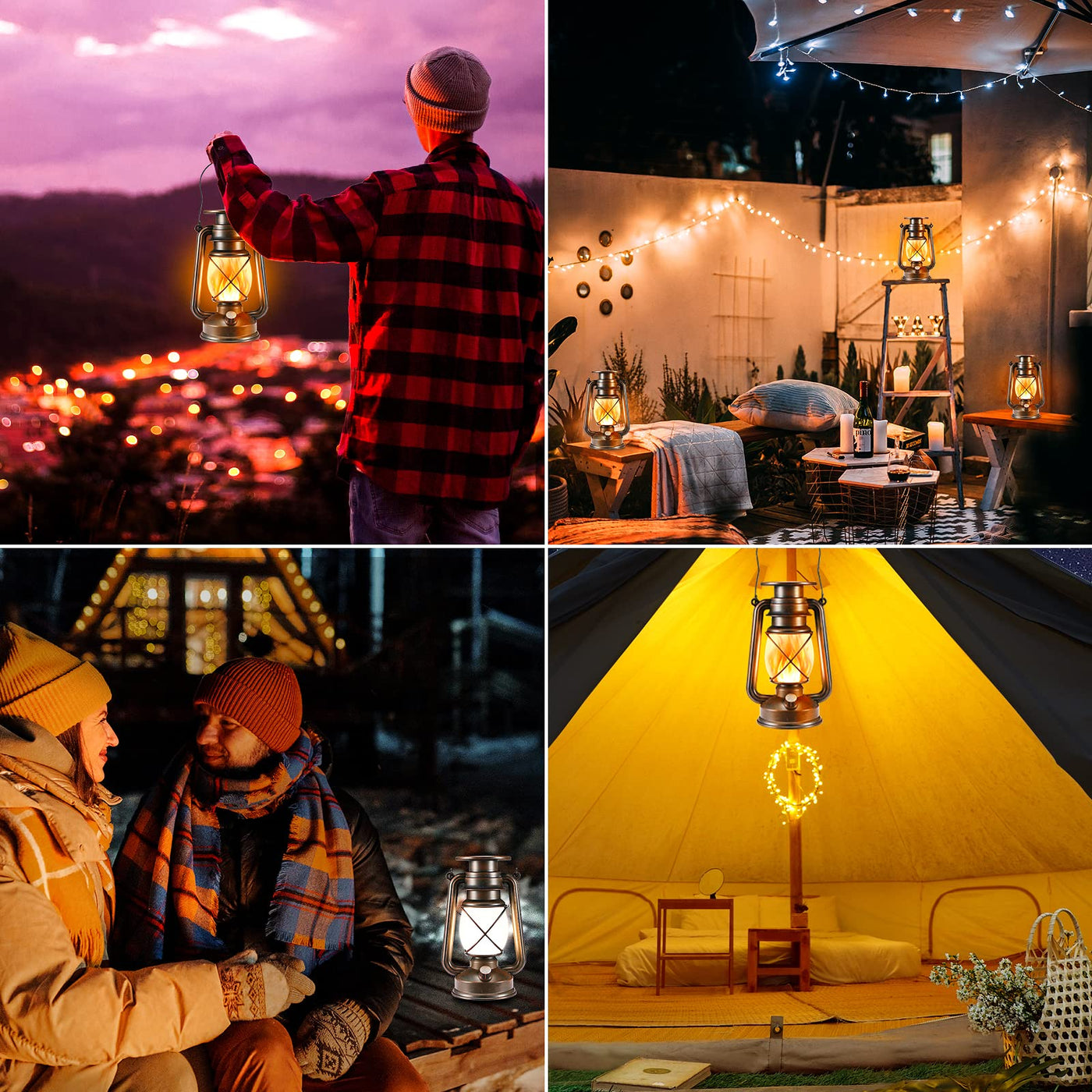 Q: What are the lighting modes available in this lantern?A: This lantern offers two lighting modes: a normal lighting mode for standard illumination and a flickering flame mode that mimics realistic flames, creating a warm and inviting atmosphere.