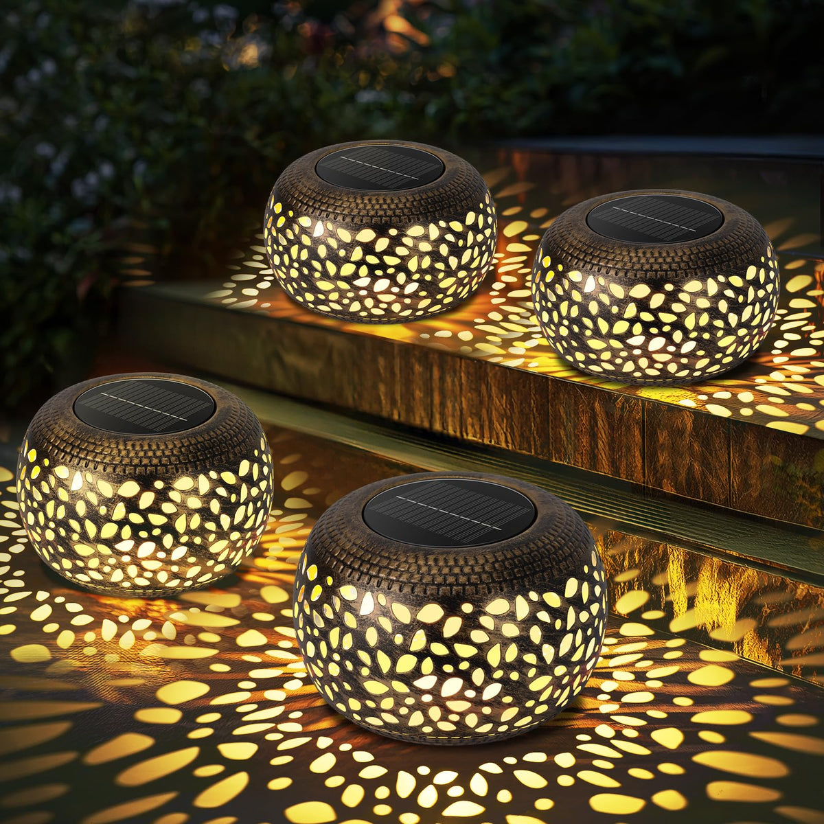 Solar Lantern Outdoor Patio Decor: 4 Pack Solar Lanterns Outdoor Waterproof, Hollow Out Retro Metal Solar Lights, Yard Porch Gar