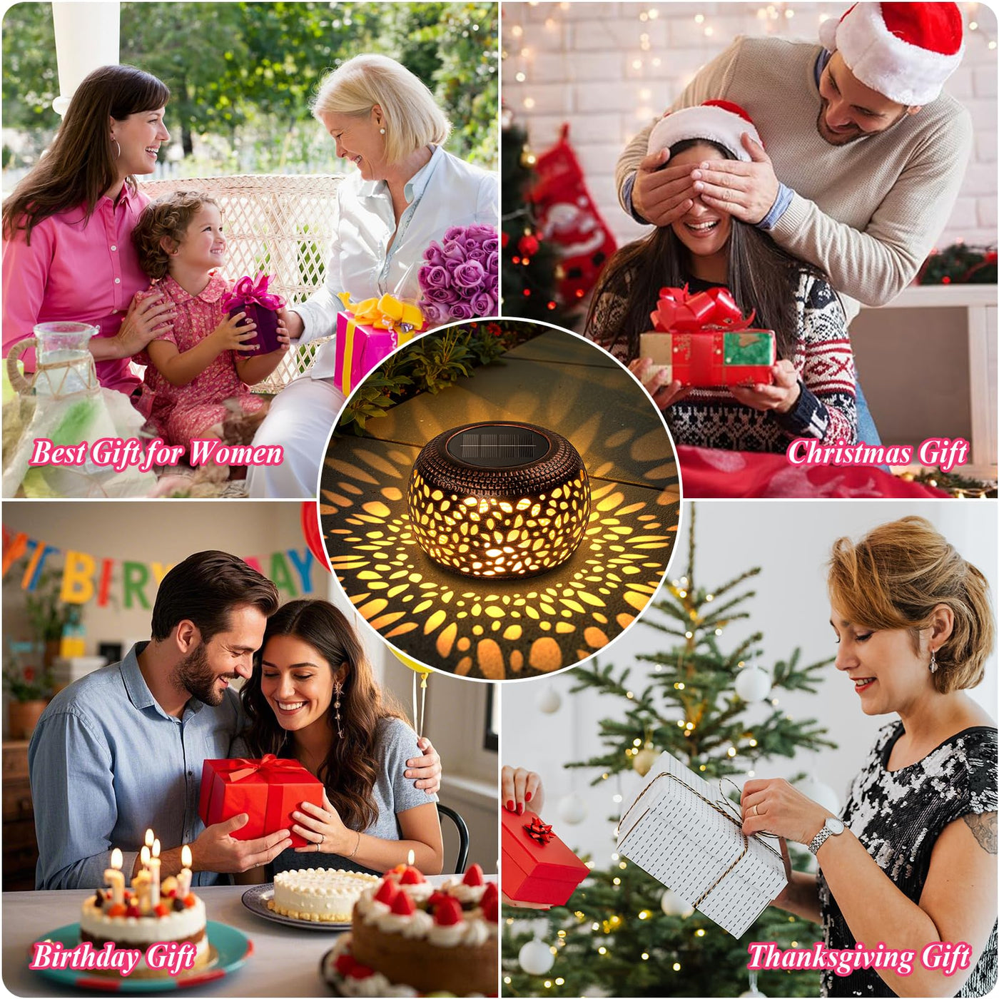 Solar Lanterns Outdoor Waterproof: 2 Pack Hollow Out Retro Metal Solar Lights - Decorative Atmosphere Table Lantern - Gifts for
