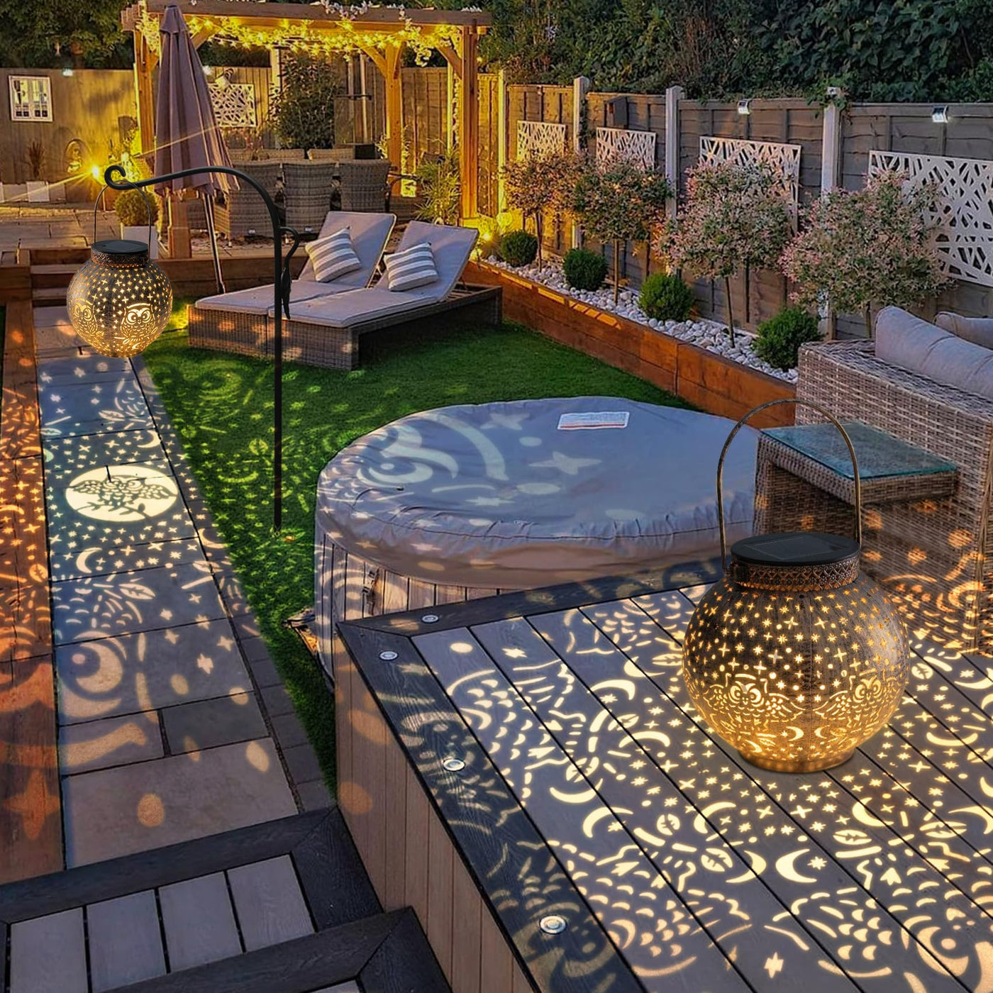 Q: What makes these solar lanterns unique for outdoor decoration?A: These solar lanterns feature an exclusive owl hollow design that projects captivating patterns of owls, stars, and the moon at night. This unique aesthetic not only enhances your garden or patio but also adds a whimsical touch that evokes joy and imagination.