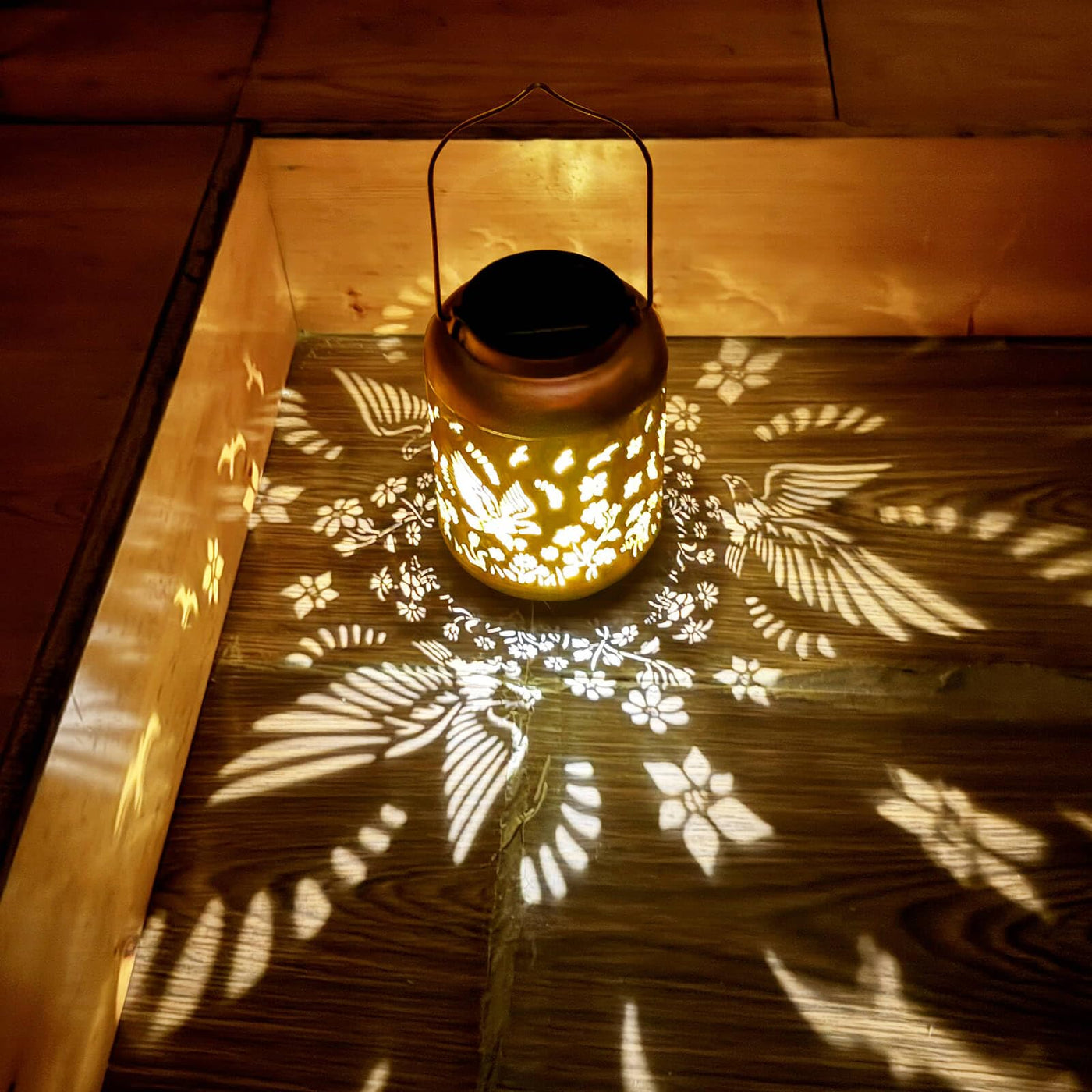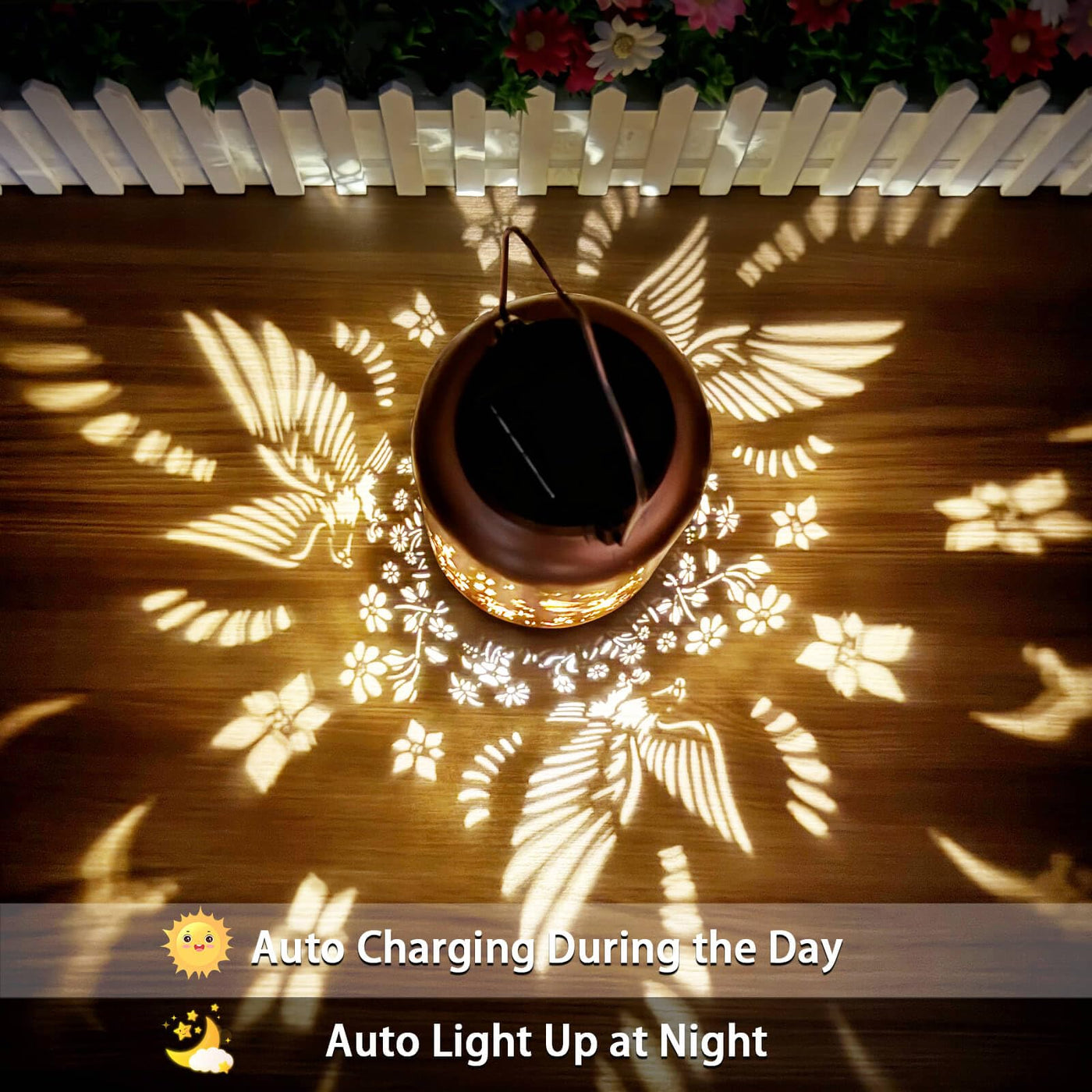 Designed with Hummingbird, Butterfly, Dragonfly, and Eagle patterns, our solar outdoor lantern can cast bright and warm light in the darkness, adding elegance and beauty to your garden, and being suitable for indoor and outdoor decoration. Hang the solar lantern on a tree and enjoy quality time with your loved one in a relaxing and warm atmosphere.