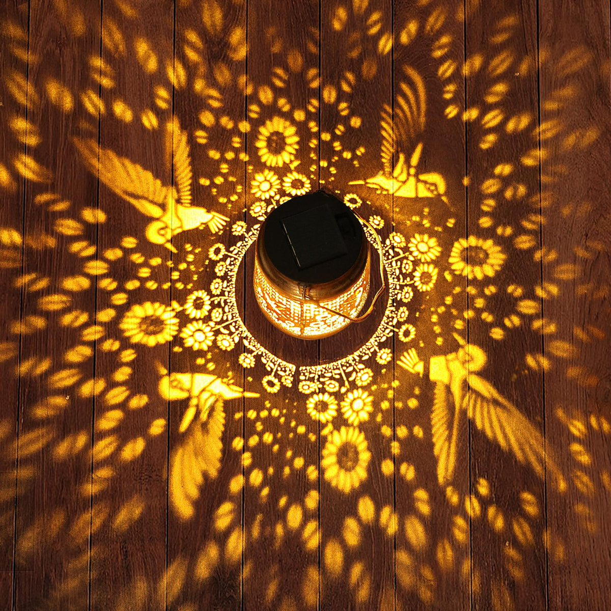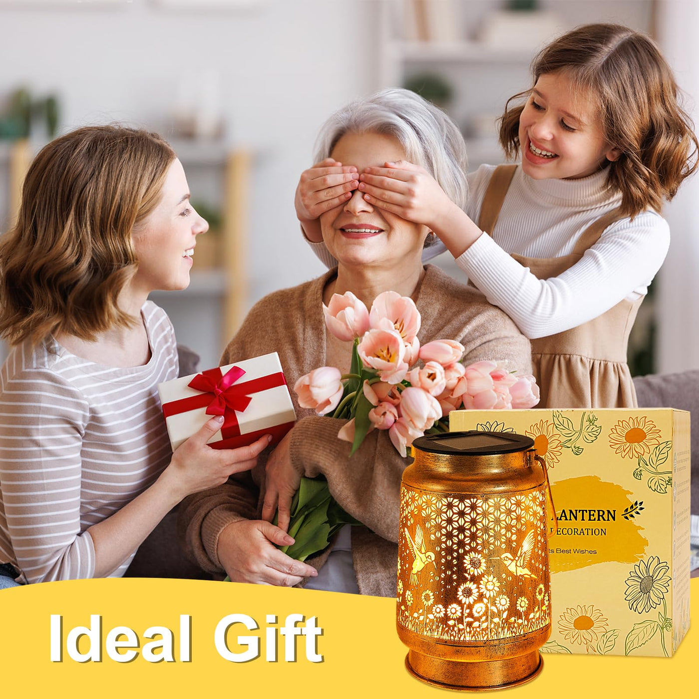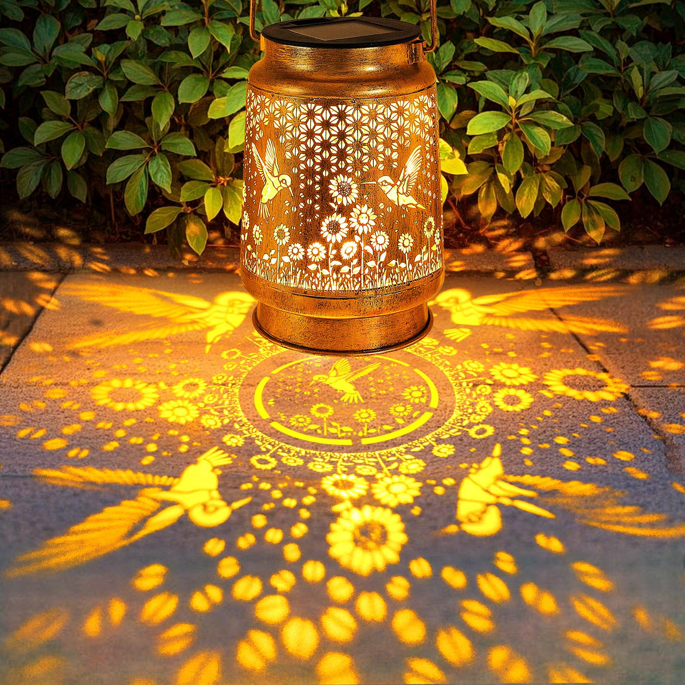 Solar Lanterns Outdoor with Shepherd Hook Waterproof Hummingbird Sunflower Garden Decor, LED Hanging Lights Metal Decor for Yard