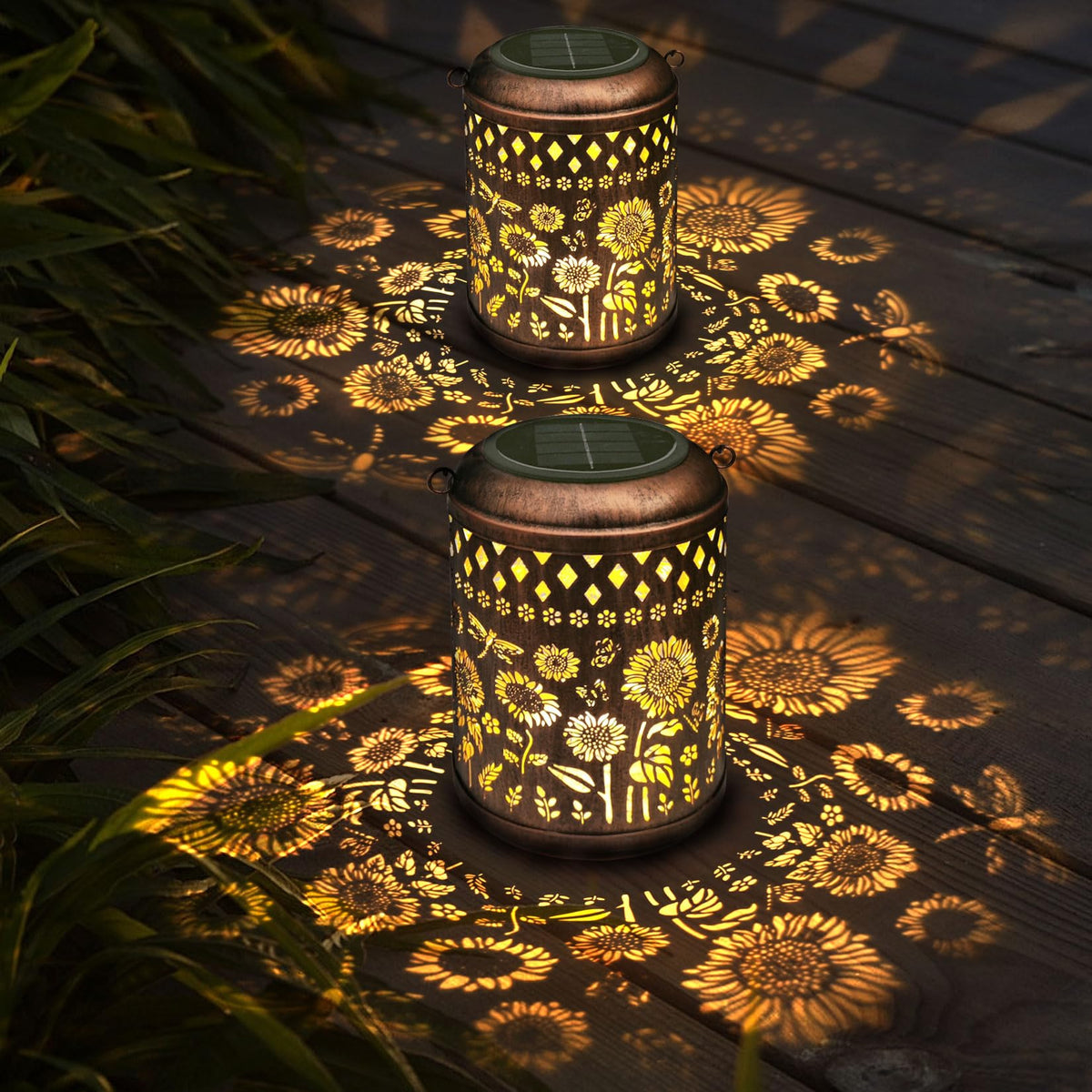 Solar Lanterns Sunflower Dragonfly Butterfly Lights Outdoor Decor Hanging Lantern Waterproof Metal LED Garden Decor Decorative,Yard,Patio,Lawn,Christmas Gifts 1 Pack Bronze