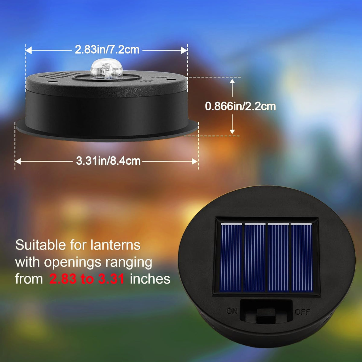 You Will Get 6 Solar Light Replacement Tops, Compatible With Most Outdoor Lanterns On The Market; Top Is 3.15 Inch, The Bottom Diameter Is 2.76 Inch, The Height Is 0.78 Inch.If Your Solar Light Does Not Work, There'S No Need To Repurchase A Whole Set Of New Lantern, Just Replace The Lantern Top, You Will Get An Almost New Lantern Again! Please Check The Size Of Your Solar Lanterns To Make Sure The Size Matches.