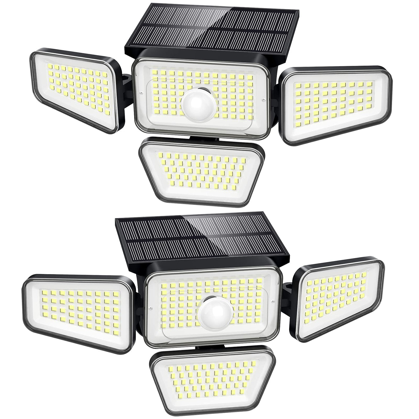 Solar Lights Outdoor, 270 Led 3000Lm Motion Sensor Light, Ip65 Waterproof 4 Heads 3 Modes 330°Wide Angle 6500K Solar Powered Security Led Wireless Flood Lights Luces Solares Para Exteriores (2 Pack)