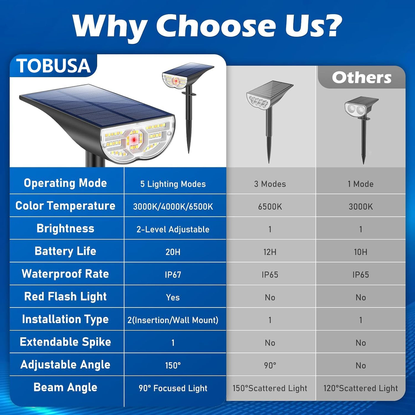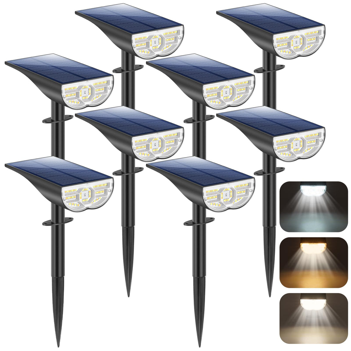 Solar Lights Outdoor, 5 Working Modes Solar Powered Spotlights For Yard, Waterproof Outside Solar Landscape Lights With 3 Color