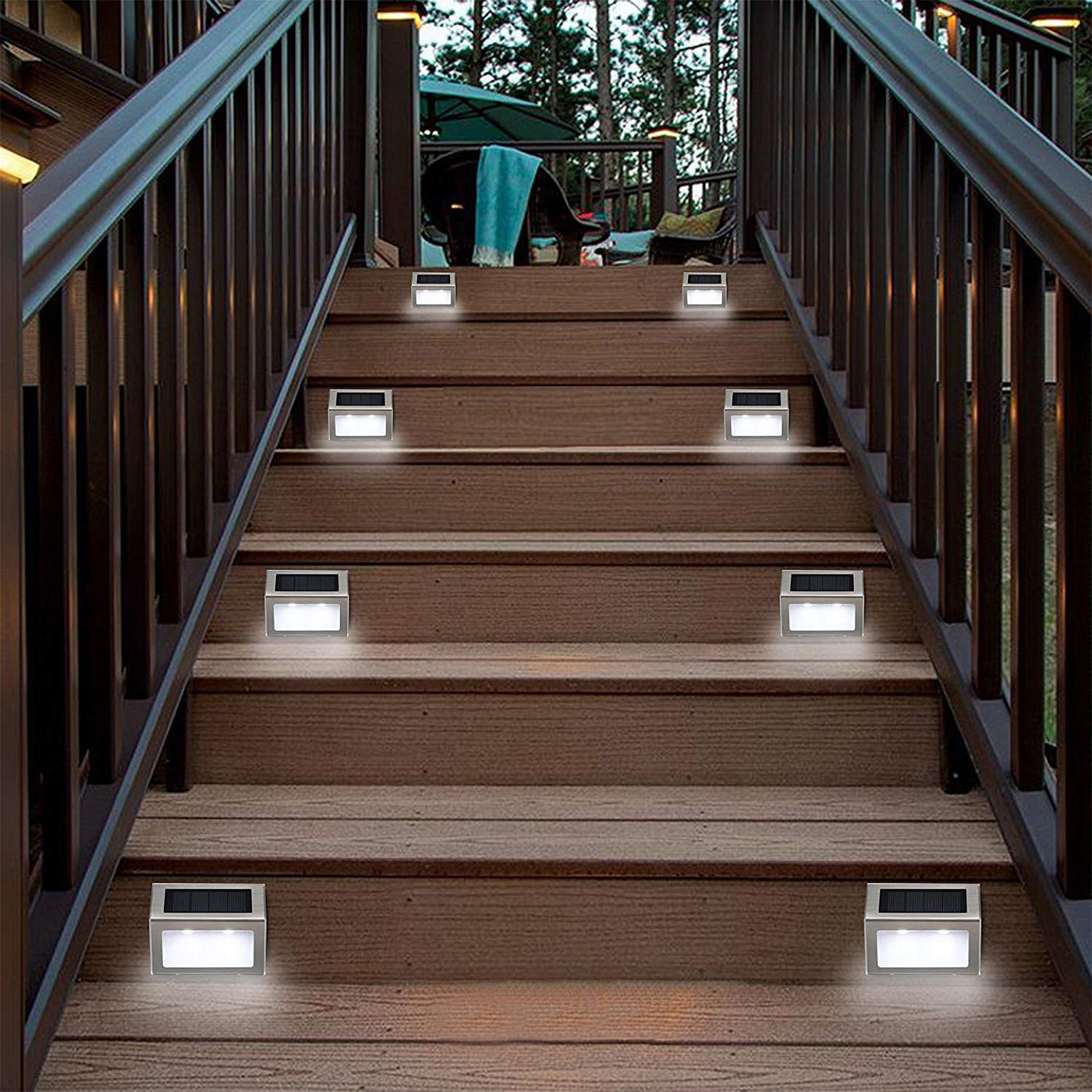 Solar Lights Outdoor Waterproof Deck Light, Solar Stair Lights Outside LED Step Lighting Stainless Steel for Paths Patio Garden