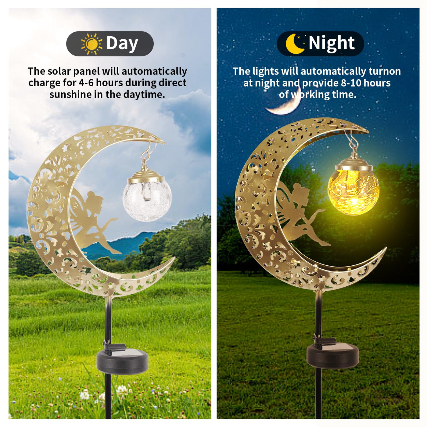 Solar Lights Outdoor Waterproof Fairy Moon Crackle Glass Lights With Metal Angel Decor For Walkway Yard Patio Or Garden Gifts Fo