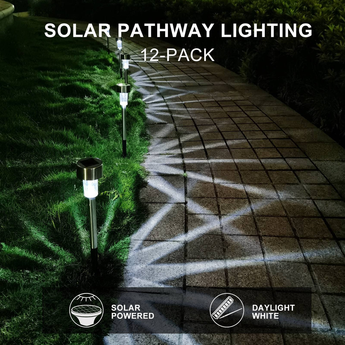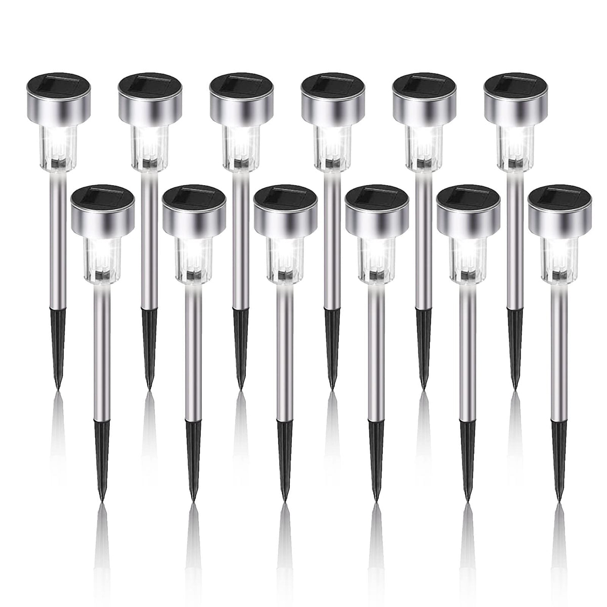 Solar Lights Outdoor Decorates Your Lawn Or Yard Garden To Be Beauty -Save Your Money By Using Energy From Sun -It Only Takes A Few Minutes To Installation -The Solar Light Apply To Different Kinds Of Scene -You Can? Fall When You Walk In The Dark Specifications: Material: Stainless Steel Light Color:White Dimensions:2.2*2.2*14.4 In Working Time: 6-8 Hours Package Included: 12 X Solar Pathway Lights Notes: When The Soil Is To Hard,Please Loosen It Before Inserting The Solar Light. Ensure The Solar Panel Have Sufficient Sunlight For 8 Hours.