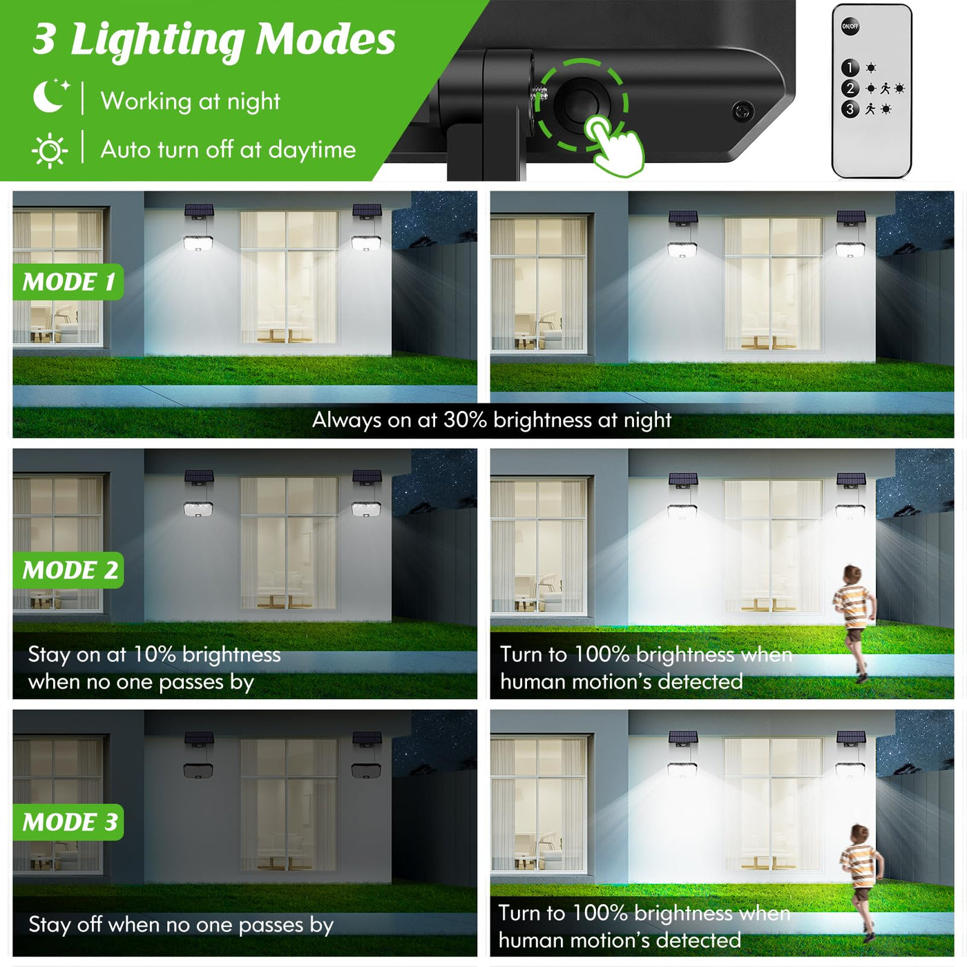 Solar Outdoor Lights With Remotes, Motion Sensor Dusk To Dawn Wall Lights Waterproof, Led Outside Solar Powered Security Flood L
