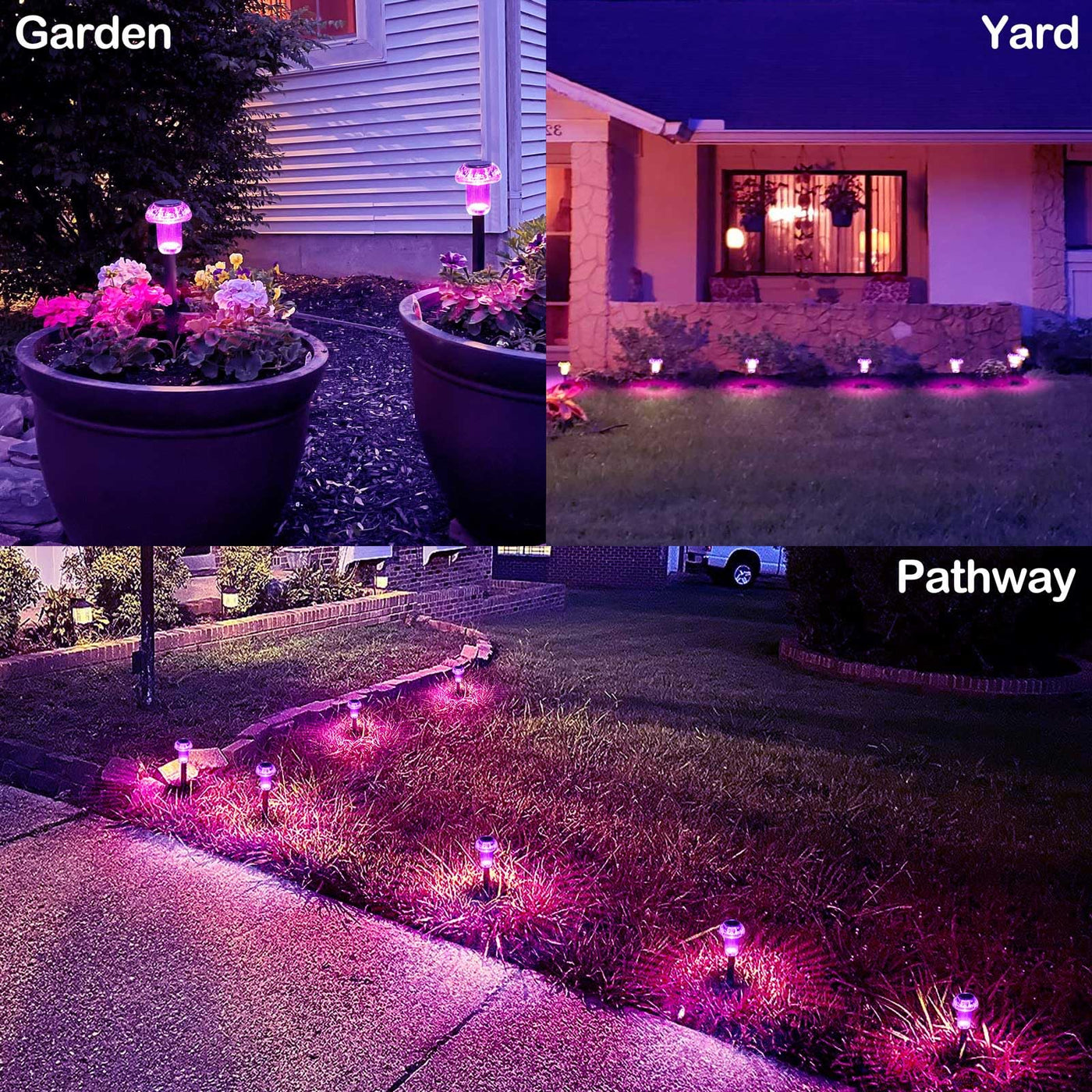 Solar Pathway Lights Pink Solar Lights Outdoor 8 Pack Solar Mushroom Lights Outside Led Lighting Solar Garden Lights Stake Waterproof For Path, Lawn,Landscape,Courtyard(Purple)