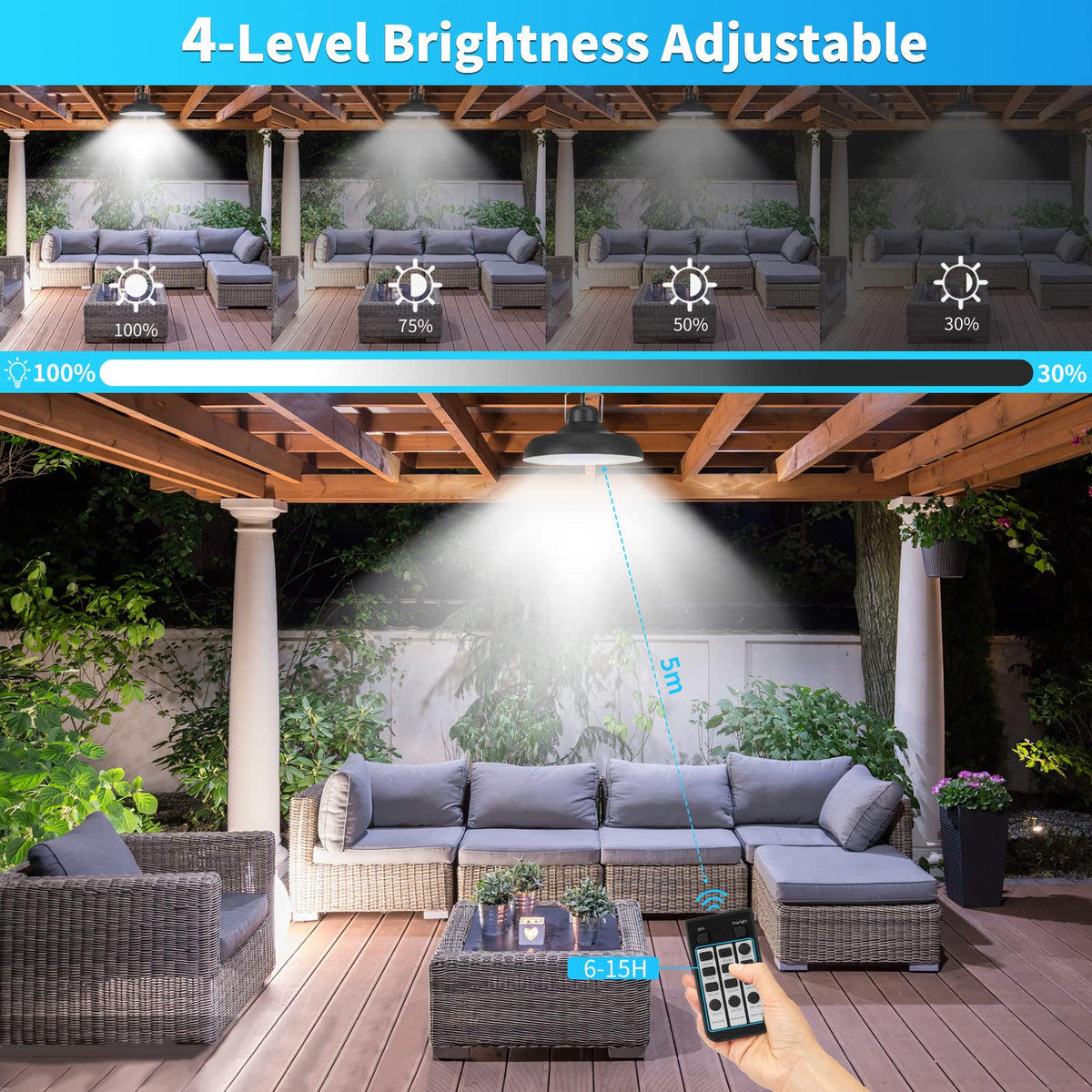 Solar Pendant Shed Light-3000K/4000K/6500K/Dimmable Lighting Solar Power Light With Remote Control,Ip65 Waterproof Timing Indoor