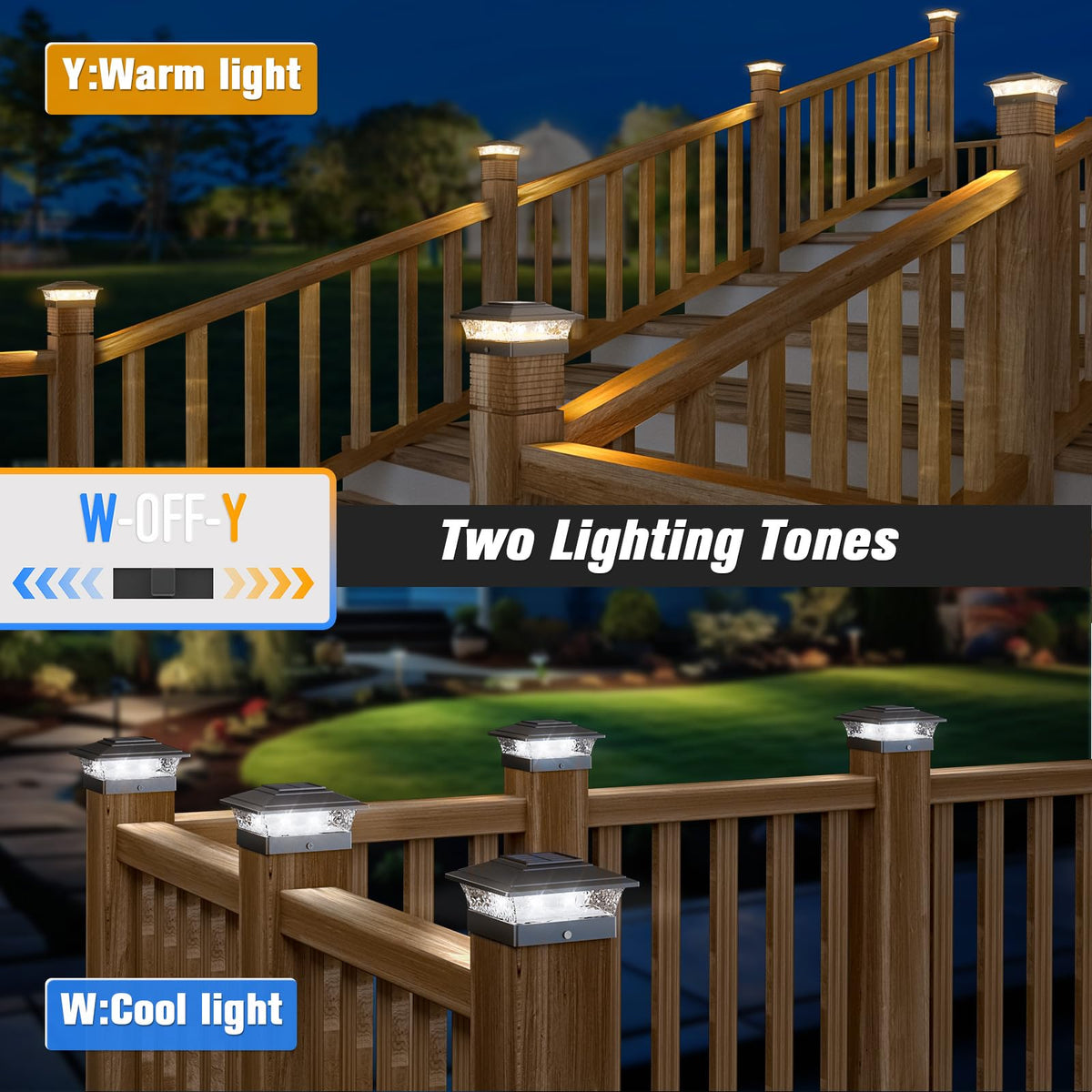 Solar Post Cap Lights With Warm White And Cool White For 4X4 Wooden/Vinyl Posts