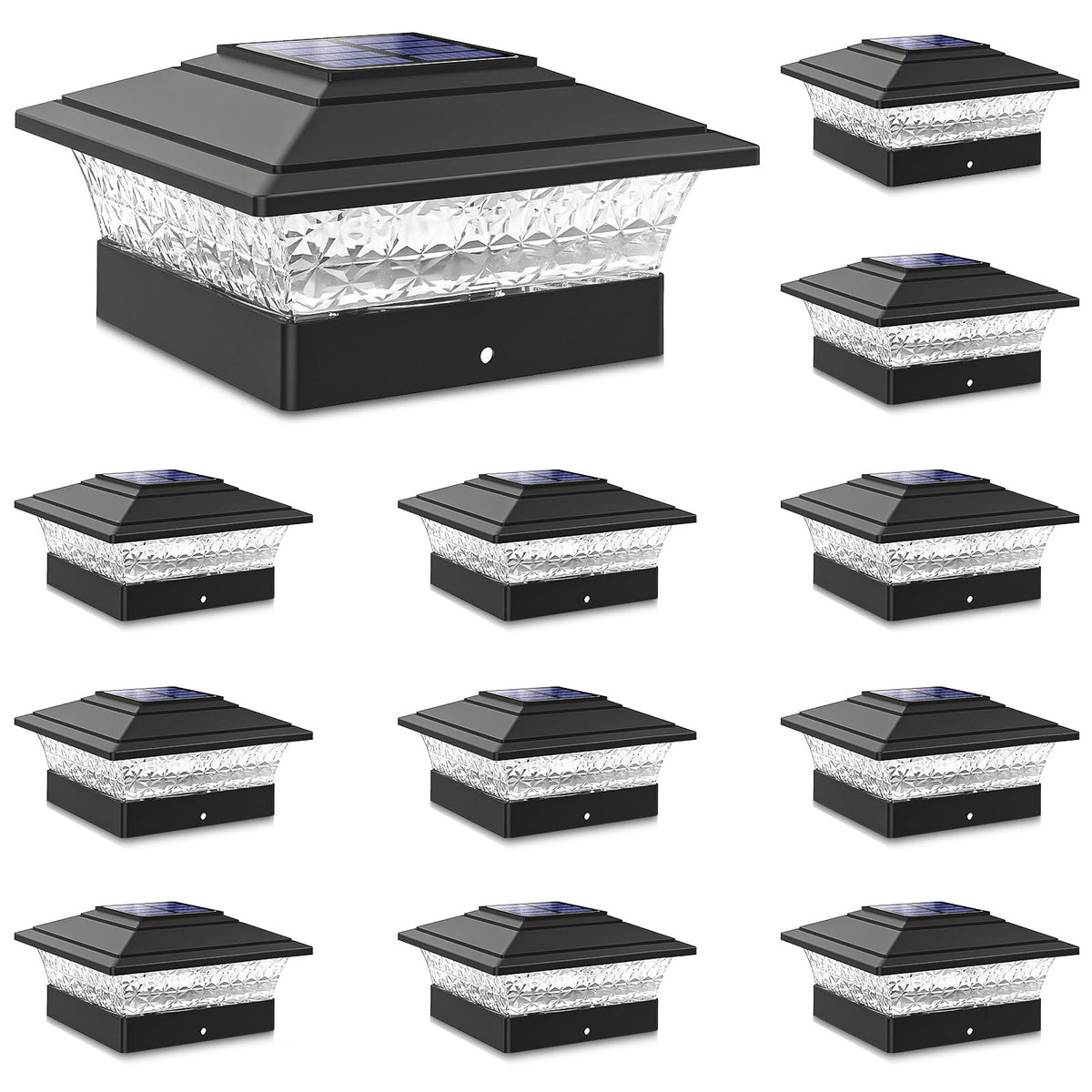 Solar Post Cap Lights Outdoor 12Pack, Waterproof Fence Post Lights With 16 Ultra Bright Leds Fit 4X4 Wood/Vinyl Posts, Black Dec