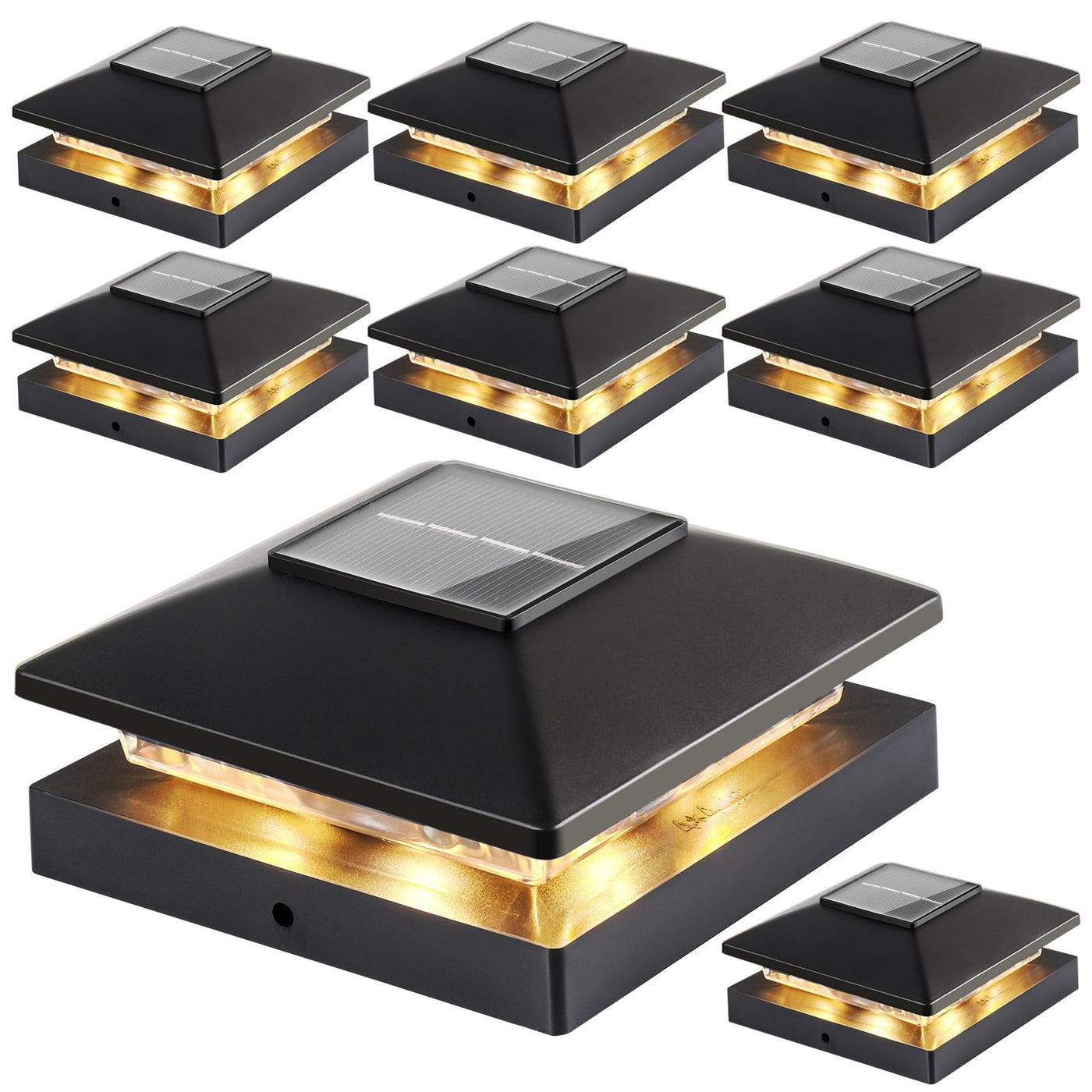 Solar Post Cap Lights Outdoor 8Pack, Black Waterproof Solar Powered Deck Fence Post Lights Fit 4X4 Wood/Vinyl Posts, Bright Warm
