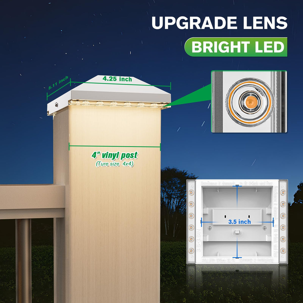 4X4 Solar Post Cap Light, Ultra Bright Warm White Light