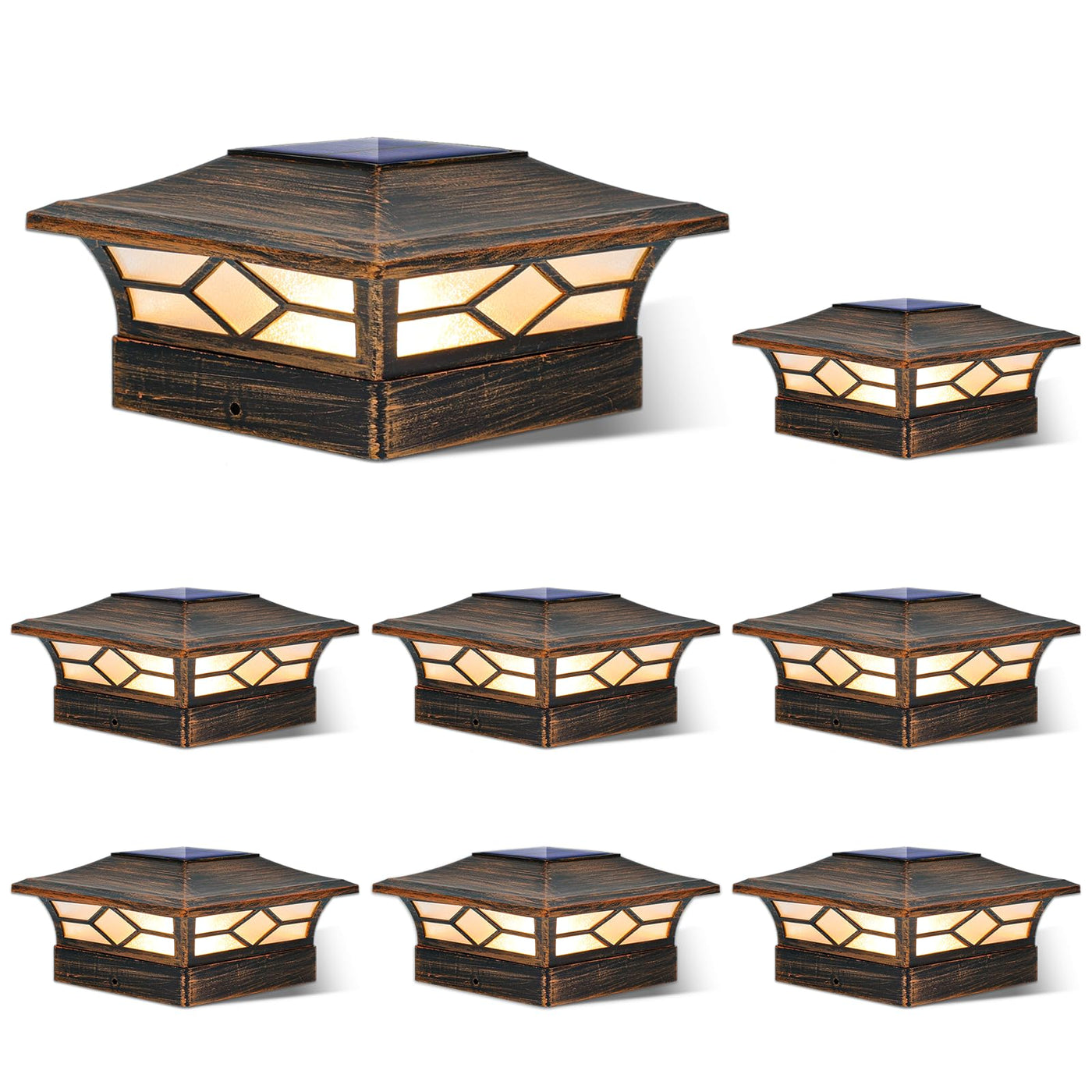Solar Post Cap Lights Outdoor 8Pack, Waterproof Solar Powered Deck Fence Post Lights For 4X4 Wood/Vinyl Posts, Solar Outdoor Led Light With Cool/Warm Lighting (Brushed Copper, 8Pack)