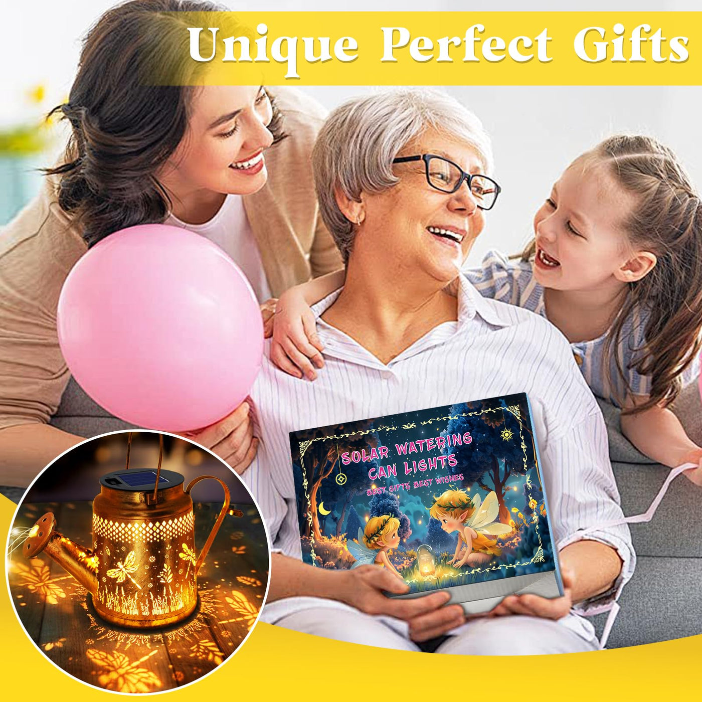 Q: What makes these lights a great gift option?A: These solar watering can lights feature a unique handmade design with whimsical fairy and star motifs, along with 50 enchanting LEDs. Their charming appearance and functionality make them an ideal gift for special occasions such as birthdays, holidays, or garden-themed events.