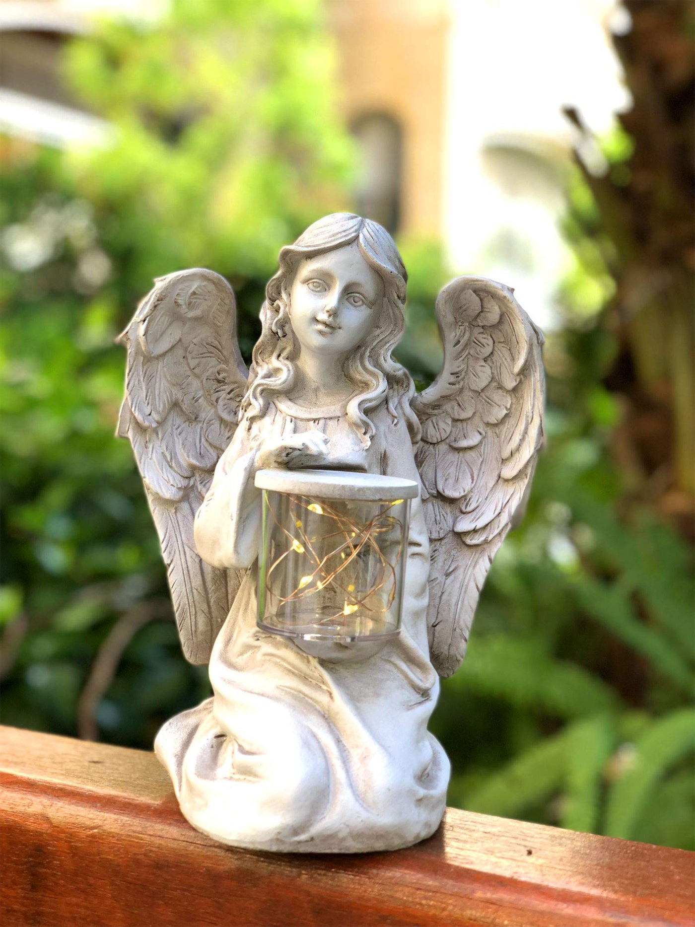 Sitting Fairy With Wings and Solar Glowing Jar, Solar Garden Light - Add vibrant color to your backyard - the Angel with Solar Glowing Jar. This illuminating Angel brightens your outdoor space with heartwarming charm. Made of polyresin and hand Painted with lots of details. Rechargeable battery (included) charges using the sun's rays , automatically turns on at night. Perfect for flower gardens , Comes with a limited 1-year warranty. Size : 9.6 x 7.6 x 5.7