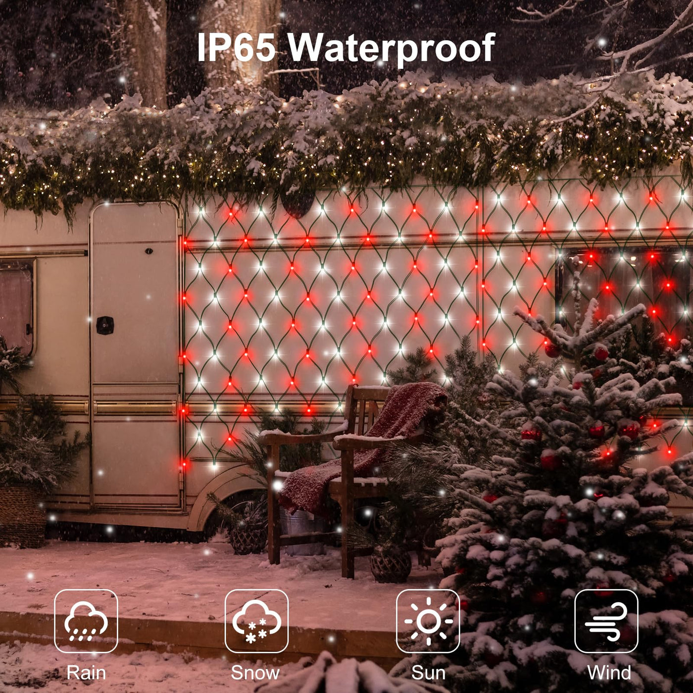 Q: What are the different lighting modes available for these Christmas net lights?A: The lights feature 8 different lighting modes, including combination, fireflies flashing, waves, fading, chasing/flashing, fading slowly, twinkle/flashing, and steady on.