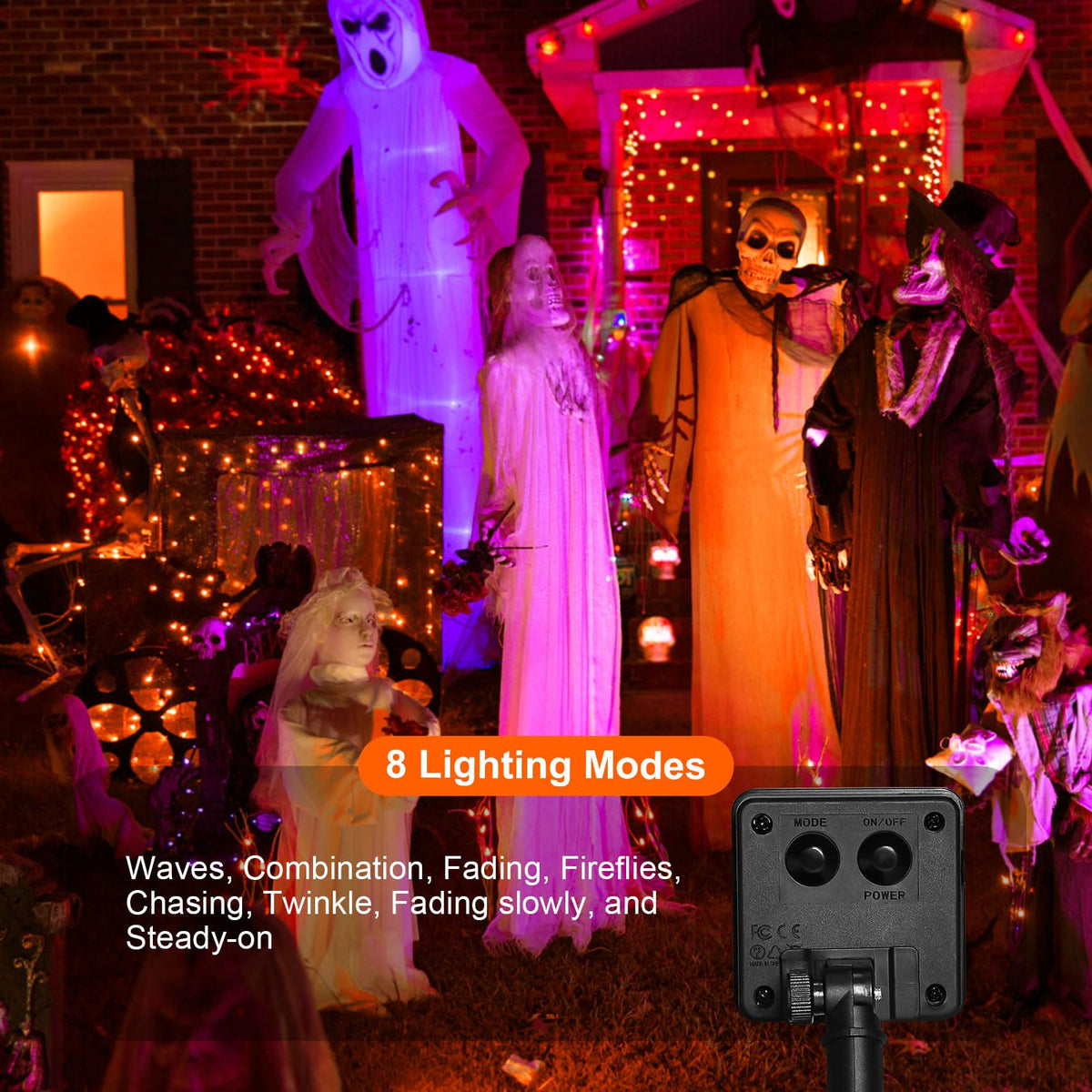 Solar Powered String Lights Outdoor, 2 Pack Total 200 Led 66Ft Solar Powered Halloween Decorative Fairy Lights 8 Modes Black Wir
