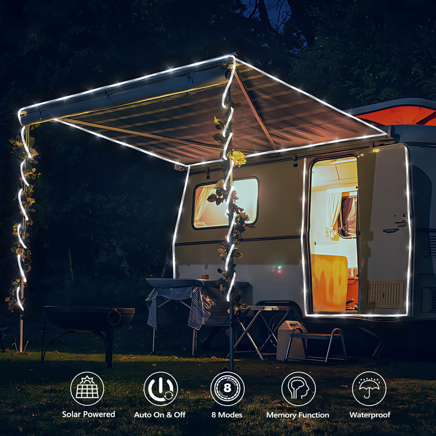 Q: Are the Solar Rope Lights waterproof?A: Yes, these Solar Rope Lights have an IP65 waterproof rating, which means they can withstand light rain and moisture without damage.