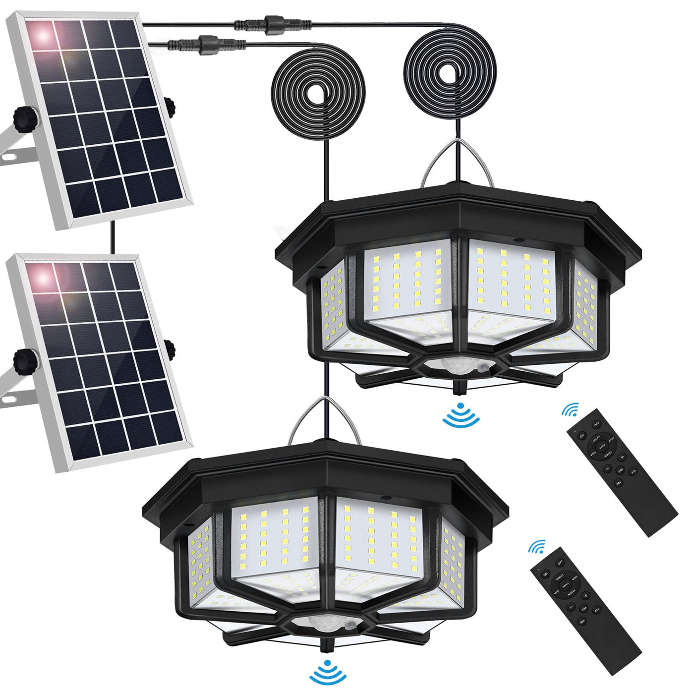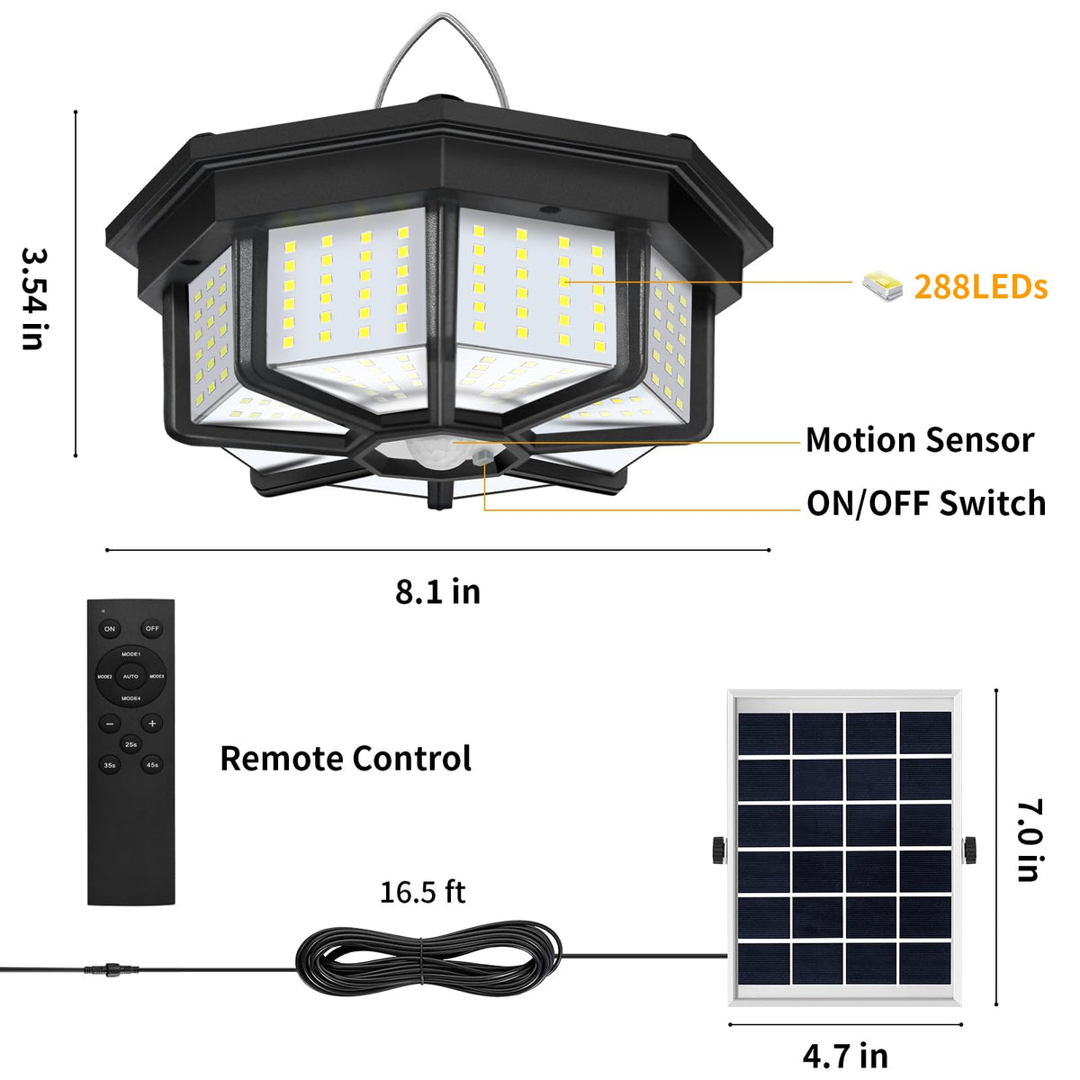 Aqonsie Solar Shed Light Indoor Outdoor, 288Led Solar Powered Motion Sensor Pendant Light Daytime Available, Solar Indoor Lights With 5 Lighting Modes & Remote For Shed Gazebo Barn Garage Home