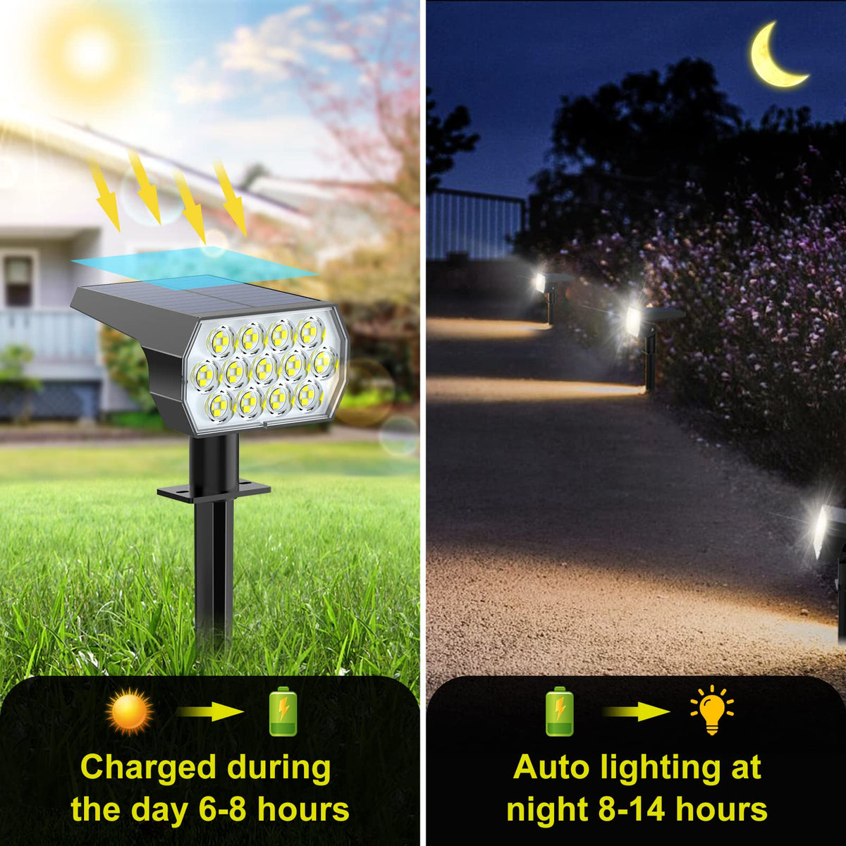Q: Are these solar lights waterproof and suitable for outdoor use?A: Yes, these solar spotlights have an IP65 waterproof rating, making them resistant to rain, snow, and other harsh weather conditions. They can operate in temperatures ranging from -68℉ to 140℉, ensuring reliability for outdoor use.