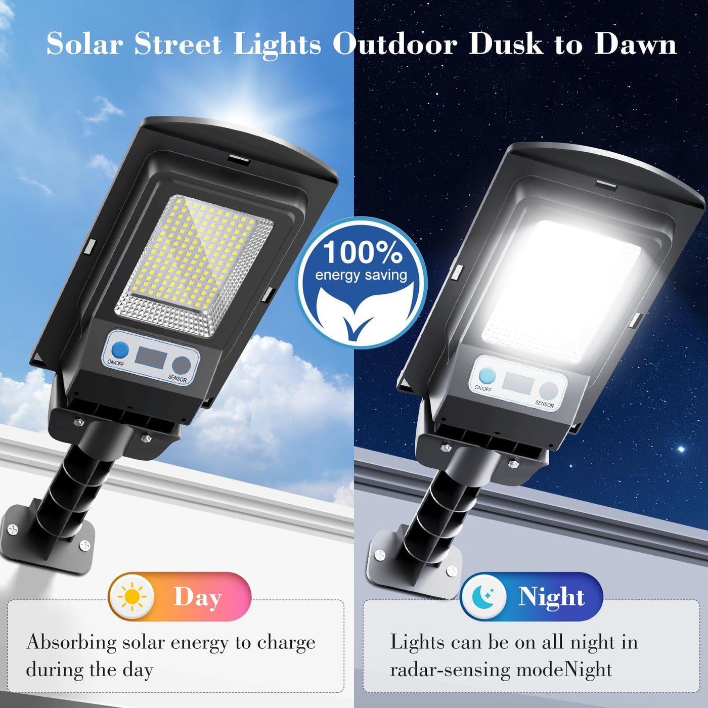 Solar Street Lights Outdoor, 20000Lm Waterproof Motion Sensor Powered Solar Light, 6500K Dusk To Dawn Led Flood Light With Remot