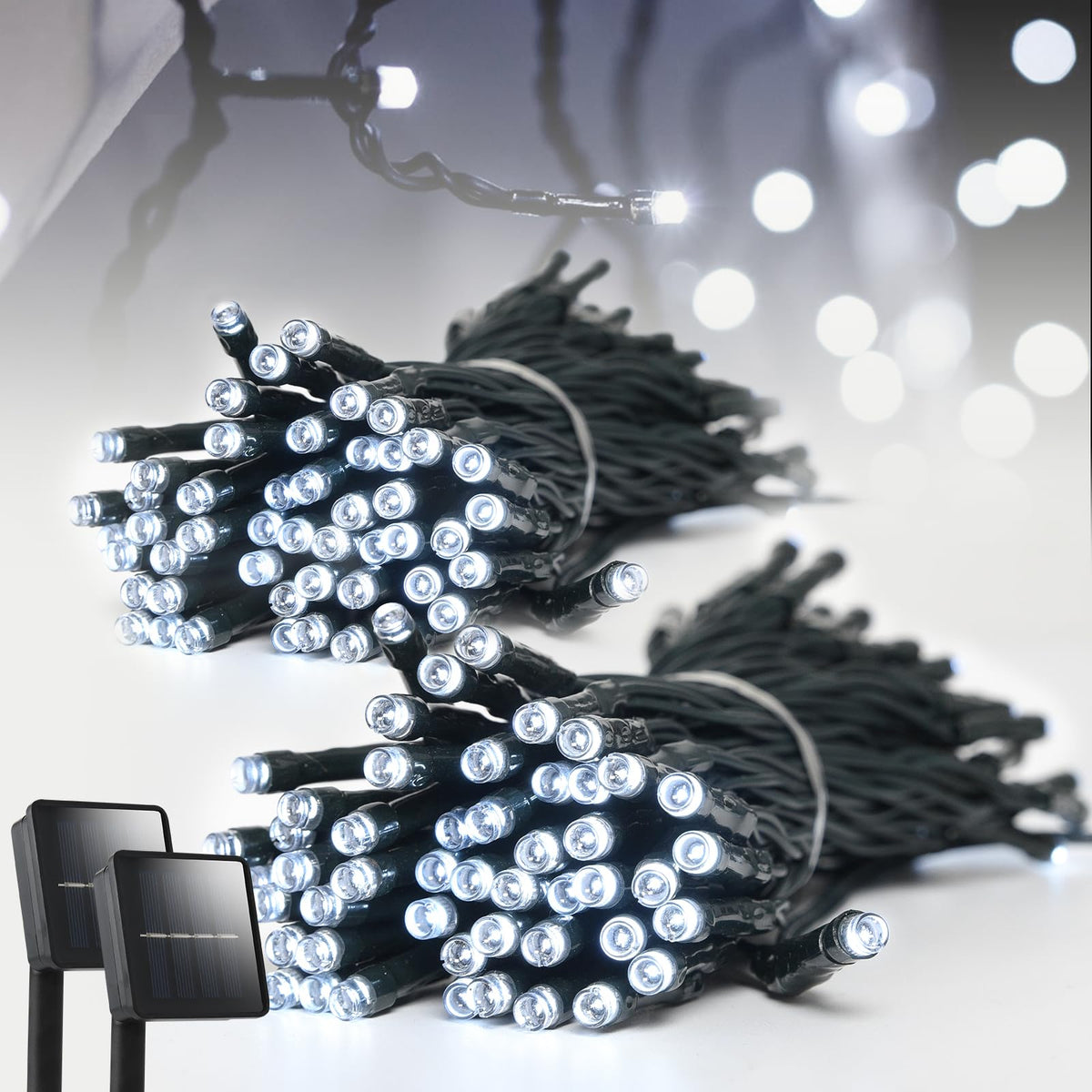 Solar String Lights 2 Pack 100Ft Outdoor Waterproof 200 Led Fairy Lights 8 Modes - Ideal For Garden, Courtyards, Trees (Cool Whi