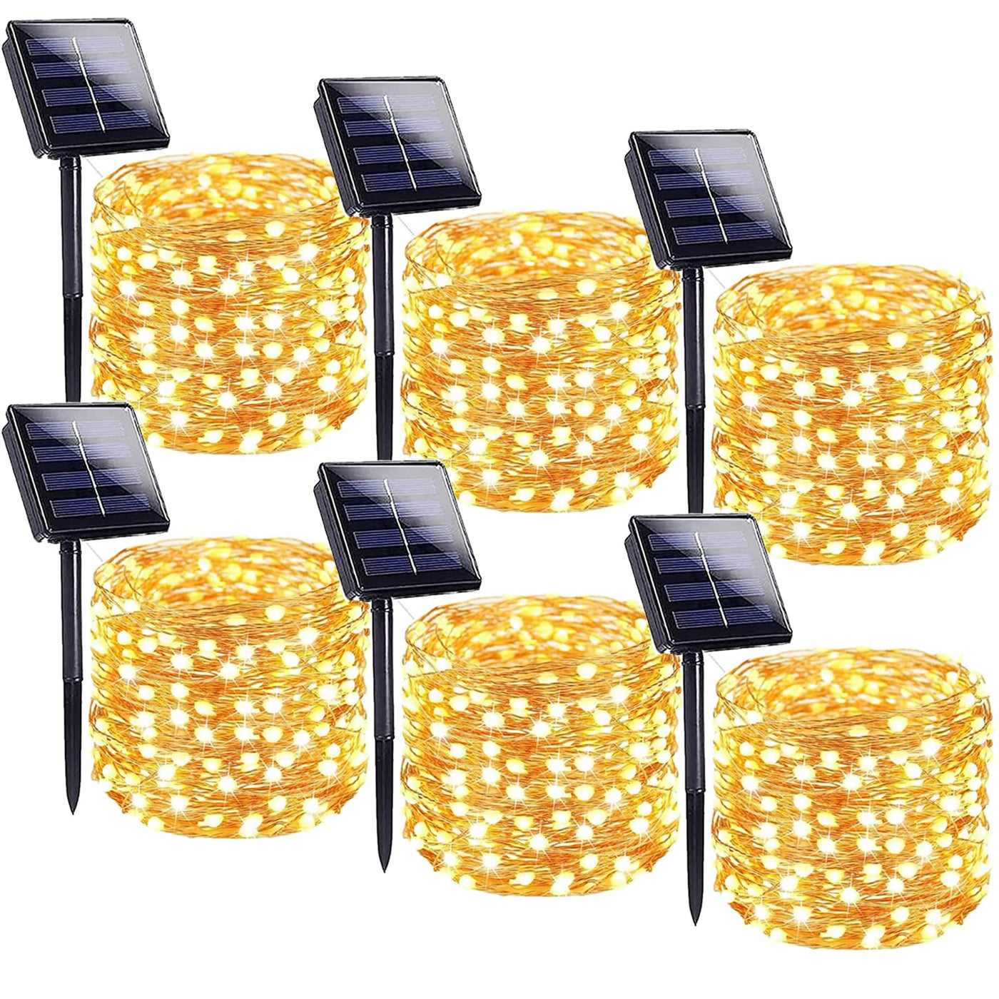 Solar String Lights Outdoor, 6-Pack 100 LED Solar Outdoor Lights, Waterproof 8 Modes Solar Fairy Lights Copper Wire for Garden Patio Tree Christmas Party Wedding (Warm White)
